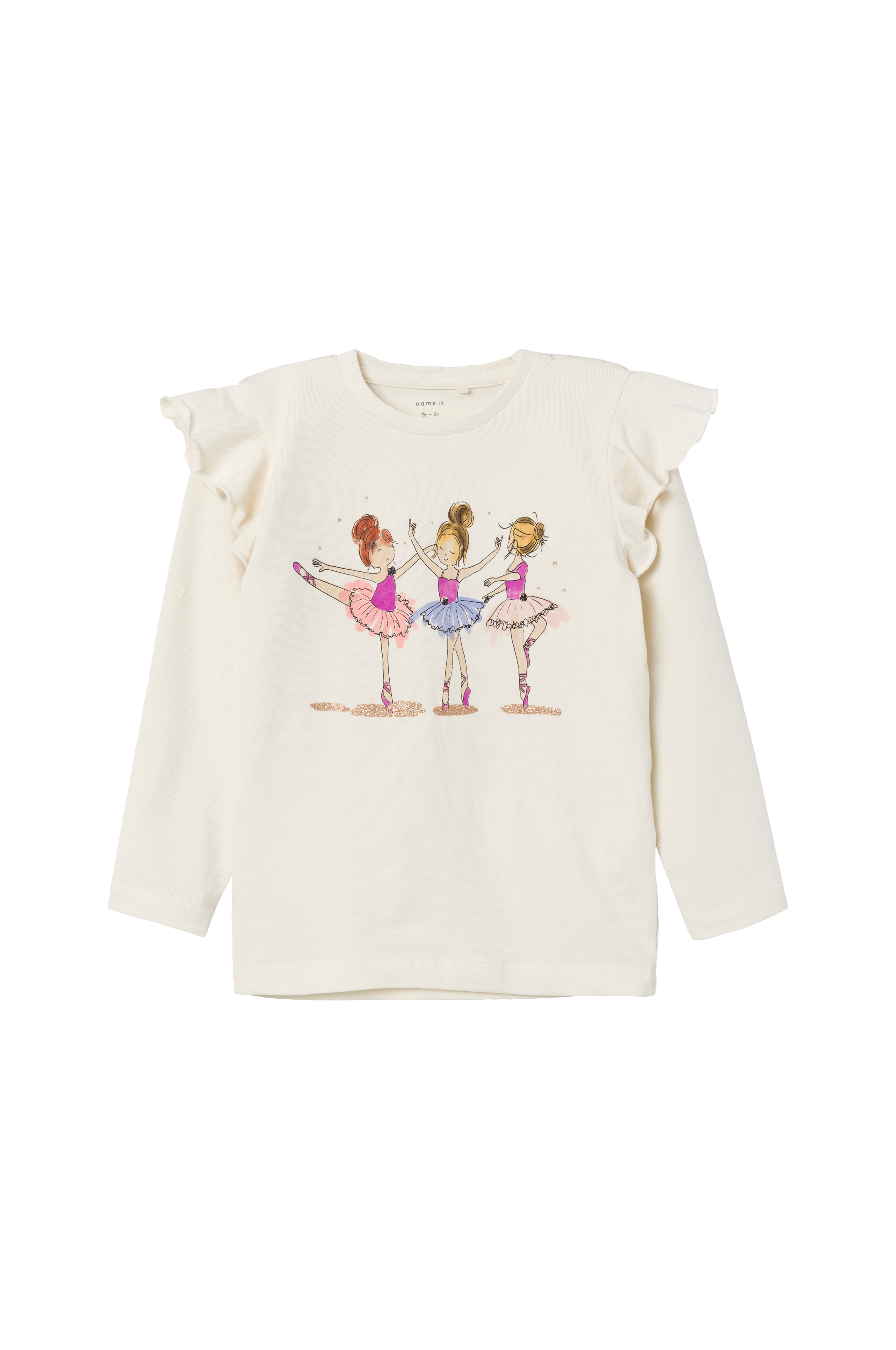 • Pitkähihainen toppi puuvillajersey-kankaasta• Röyhelöt olkapäissä