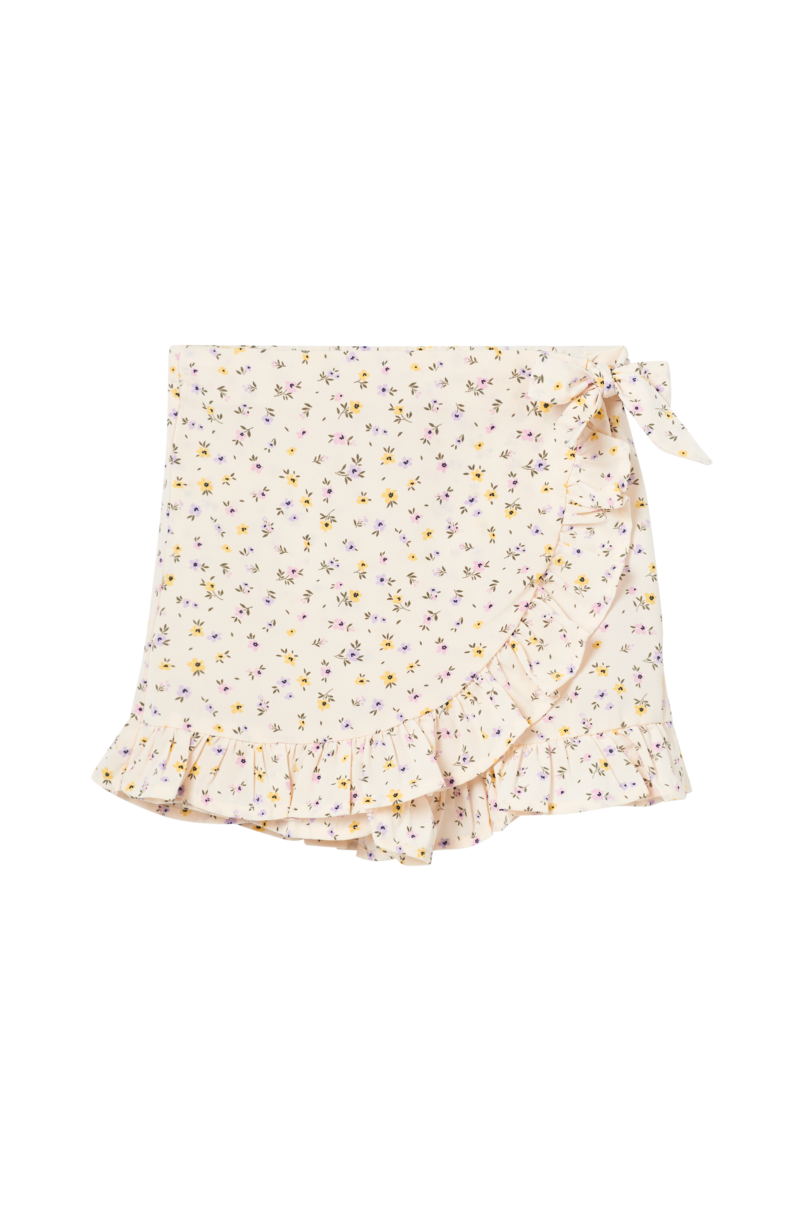 • Kietaisumalli solmittavalla vyöllä sivulla ja shortseilla alla• Kuminauha vyötärön takaosassa• Röyhelö etureunaa pitkin ja lahkeiden lopuissa