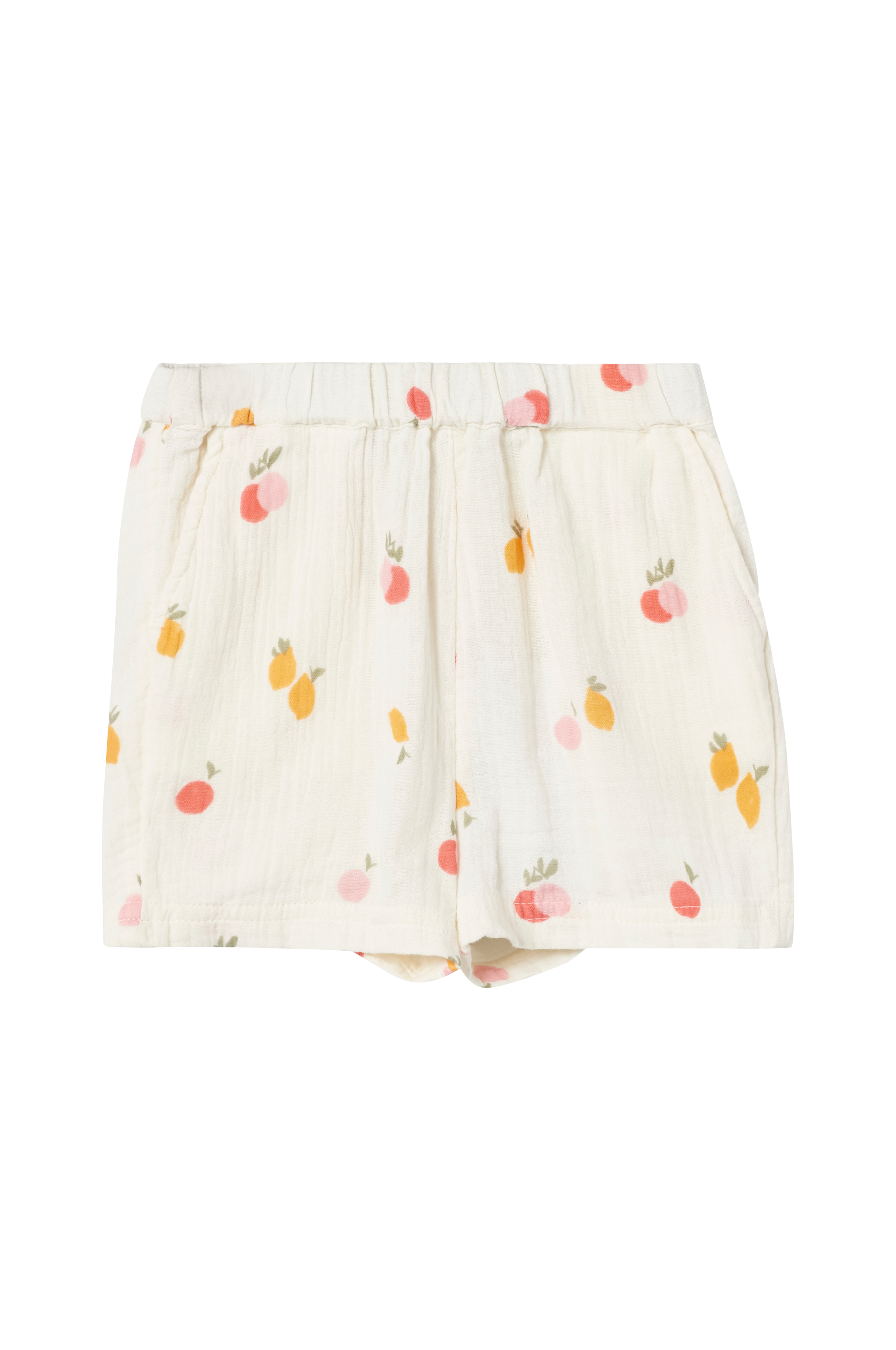 • Shortsit kudotusta, pehmeästä puuvillasta painetulla kuvioinnilla• Säädettävä, elastinen vyötärö• Sivutaskut