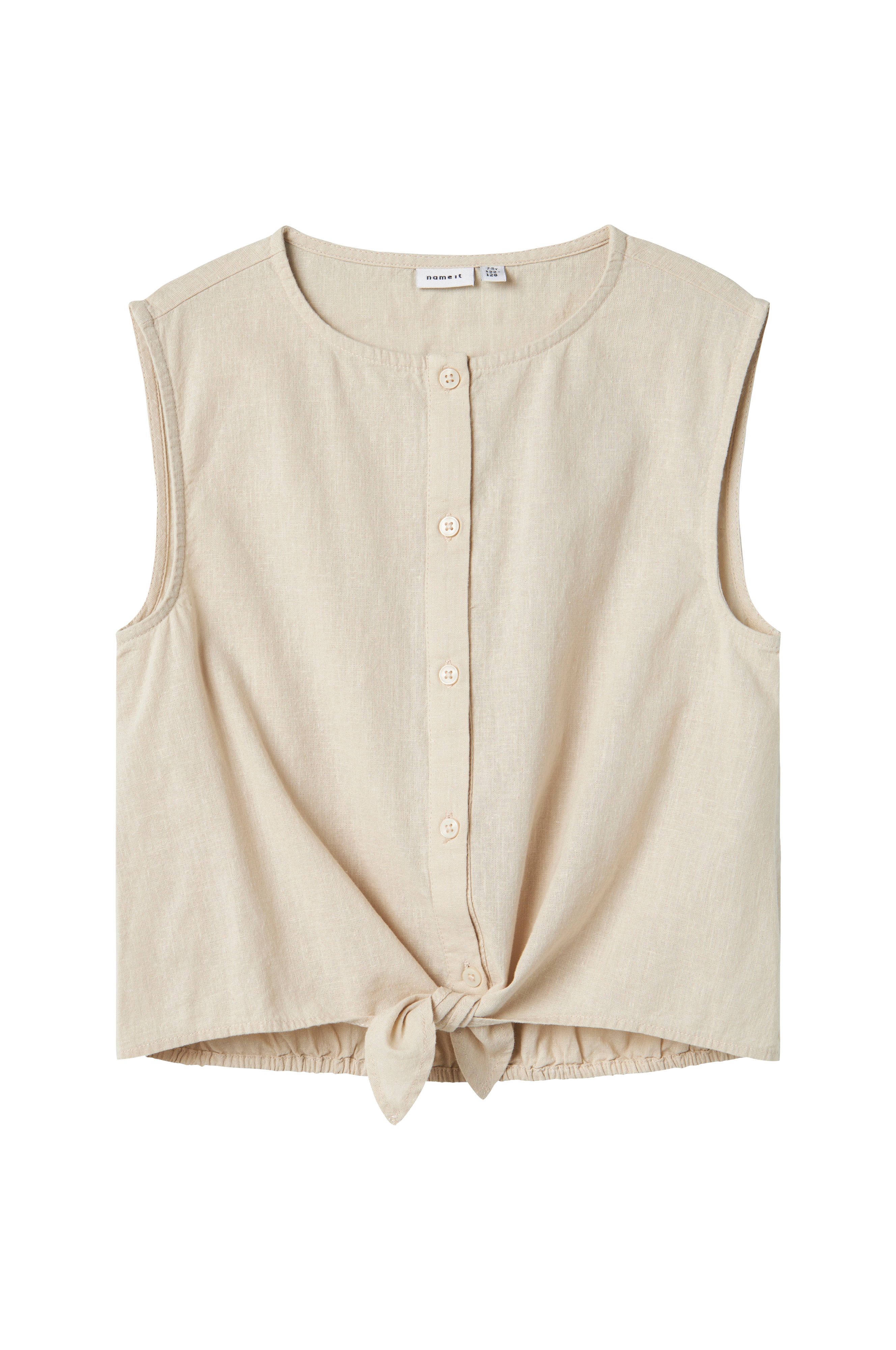 • Hihaton toppi pellavasekoitteesta• Nappikiinnitys• Epäsymmetrinen helma edessä• Kuminauha alhaalla takana