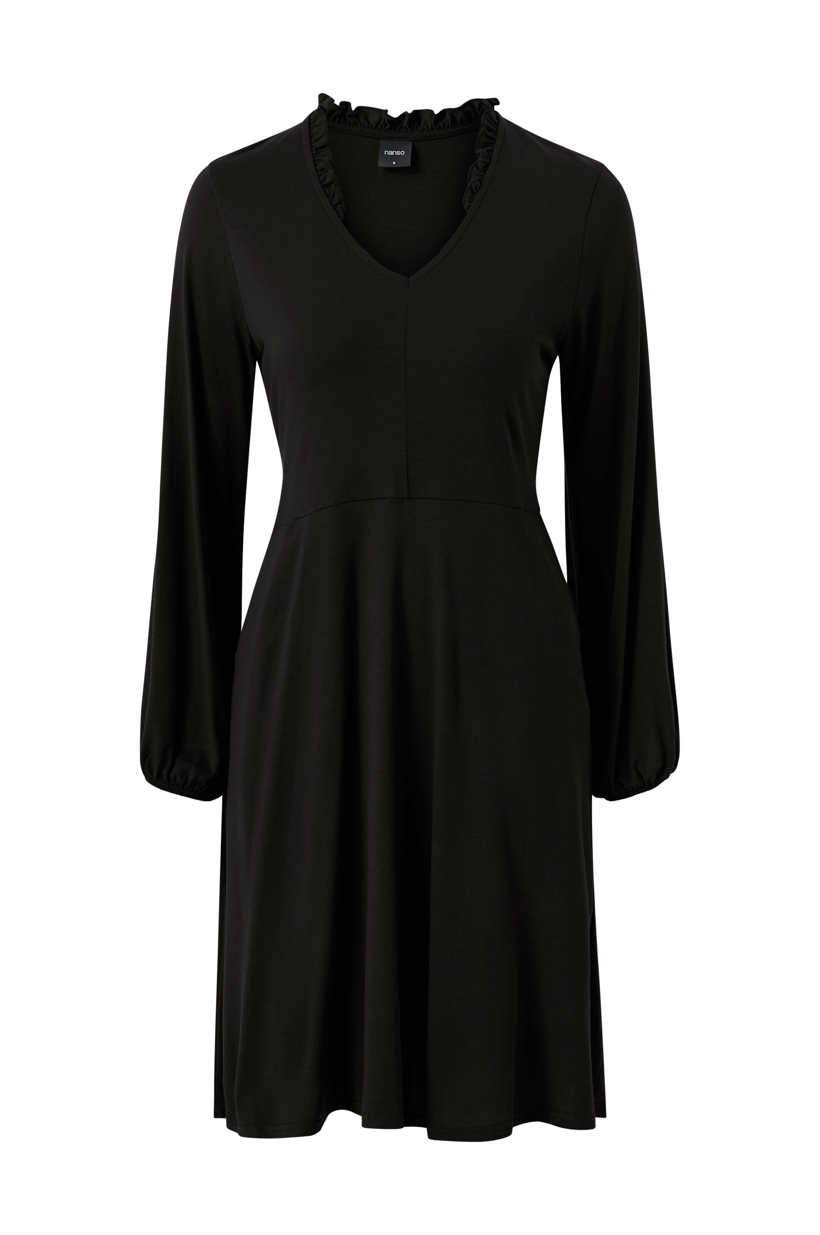 • Malli korostetulla vyötäröllä• V-muotoinen kaula pienellä röyhelöllä niskan kohdalla• Pitkä hiha joustavalla hihansuulla• Taskut edessä• Pituus: 101 cm koossa S