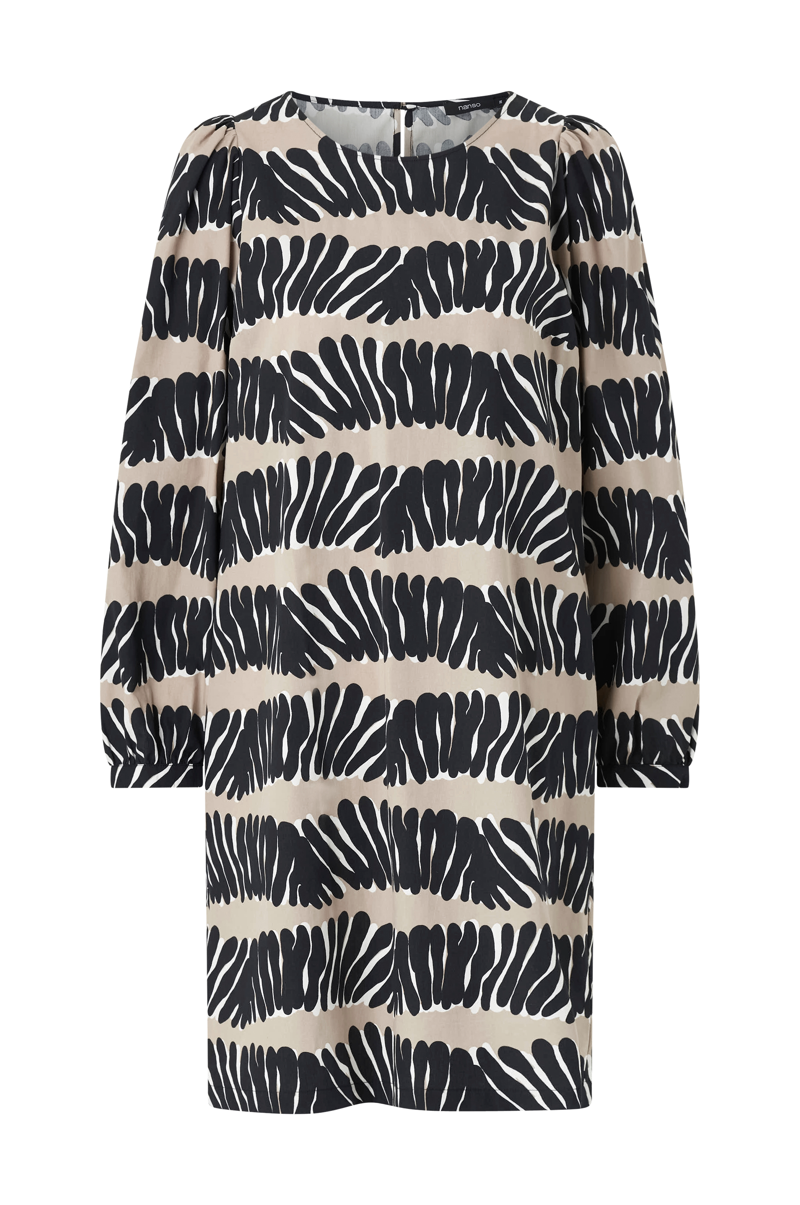 • Mekko viskoosista painetulla kuvioinnilla• Veneen muotoinen kaula-aukko• Halkio napilla niskan kohdalla• Ohut hihansuu hihansuissa yhdellä napilla• Sivutaskut• Poimutetut yksityiskohdat olkapäissä ja hihansuissa• Pituus: 98 cm koossa 36