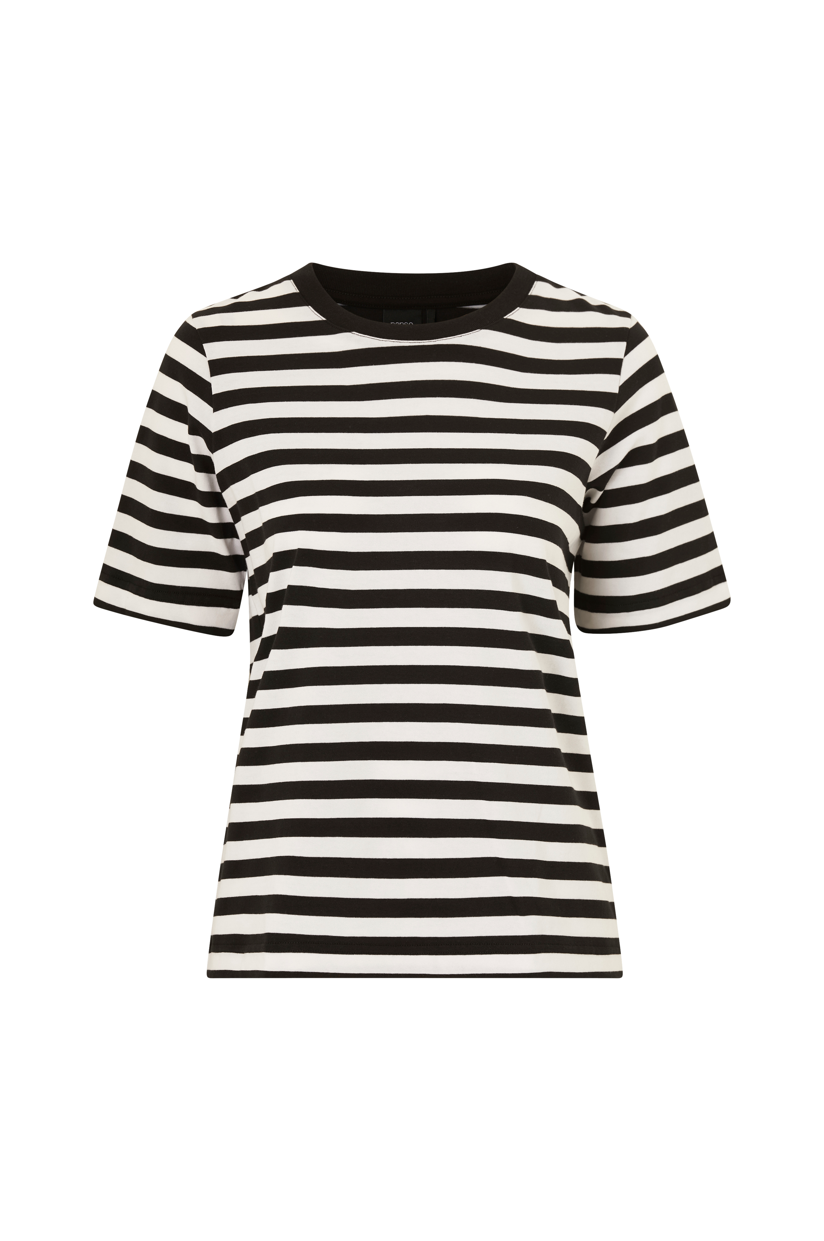 • Suora, raidallinen malli• Pyöreä pääntie ribatulla reunalla• Lyhyt hiha