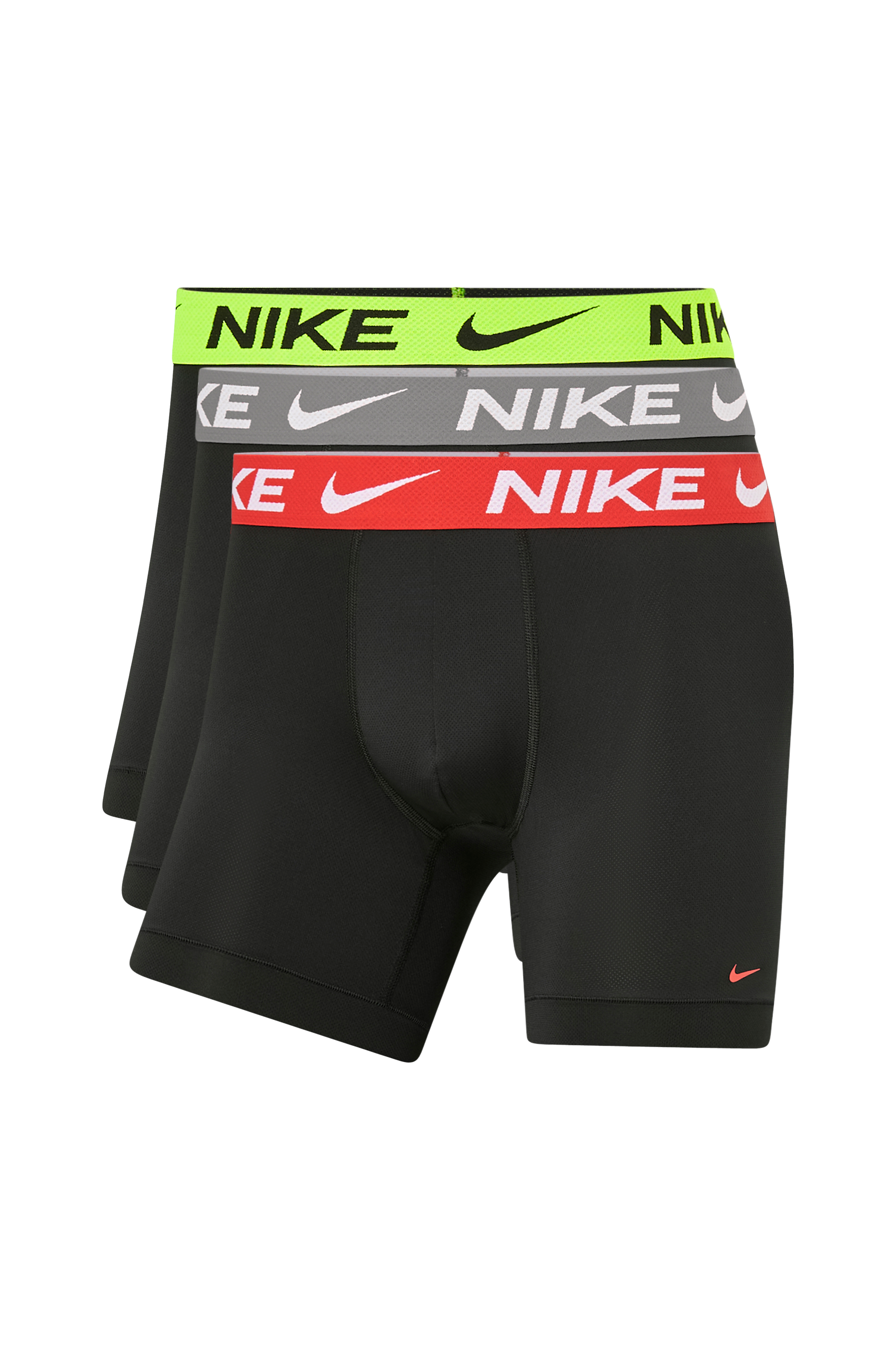 Bokserit joustavaa mikrokuitua, jossa kosteutta pois siirtävä Dri-FIT. Päälleommeltu vyötärökuminauha, jossa logo ympäriinsä. 3/pakkaus.