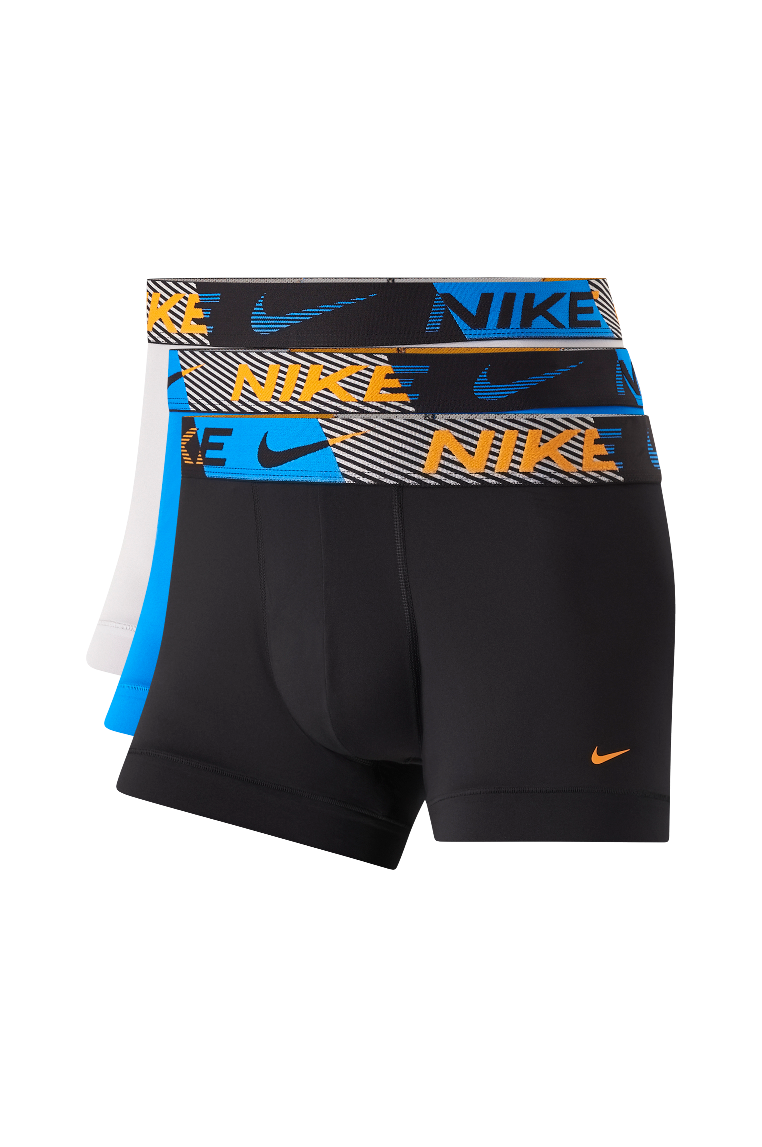 Bokserit joustavaa mikrokuitua, jossa kosteutta pois siirtävä Dri-FIT. Päälleommeltu vyötärökuminauha, jossa logo ympäriinsä. 3/pakkaus.