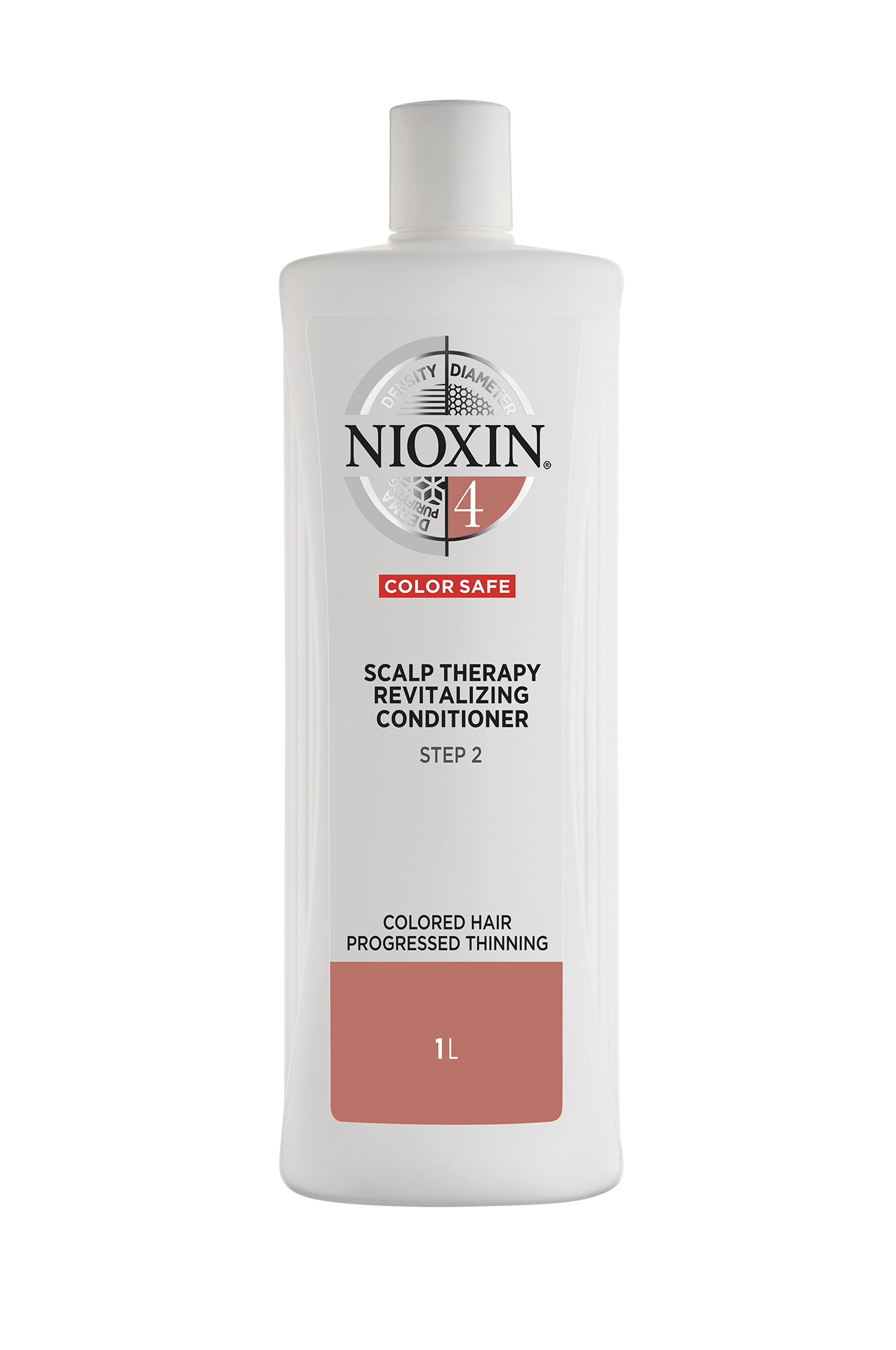 Nioxin System 4 Scalp Therapy Revitalising Conditioner -hoitoaine värjätyille hiuksille, joissa on huomattavaa hiustenlähtöä. Kolmiosaisen Nioxin-menetelmän toinen vaihe - menetelmä on erityisesti kehitetty vahvistamaan hiuksia ja estämään niiden katkeamista. Hiuksia selvittävä ja hoitava hoitoaine auttaa säilyttämään hiusten kosteustasapainon, vahvistamaan hiusten rakennetta ja lisäämään hiusten vastustuskykyä, jotta hiukset näyttävät terveemmiltä ja täyteläisimmiltä. Kliinisesti ja dermatologisesti testattu hoitoaine, joka sisältää valkoisen teen uutetta ja piparminttuöljyä, vähentää katkenneiden hiusten aiheuttamaa hiustenlähtöä jopa 91%*, ja sopii värjätyille hiuksille, joissa on huomattavaa hiustenlähtöä. Käytä yhdessä Nioxin System 4 Cleanser Shampoo- ja Nioxin System 4 Treatment -tuotteiden kanssa parhaan lopputuloksen saavuttamiseksi.