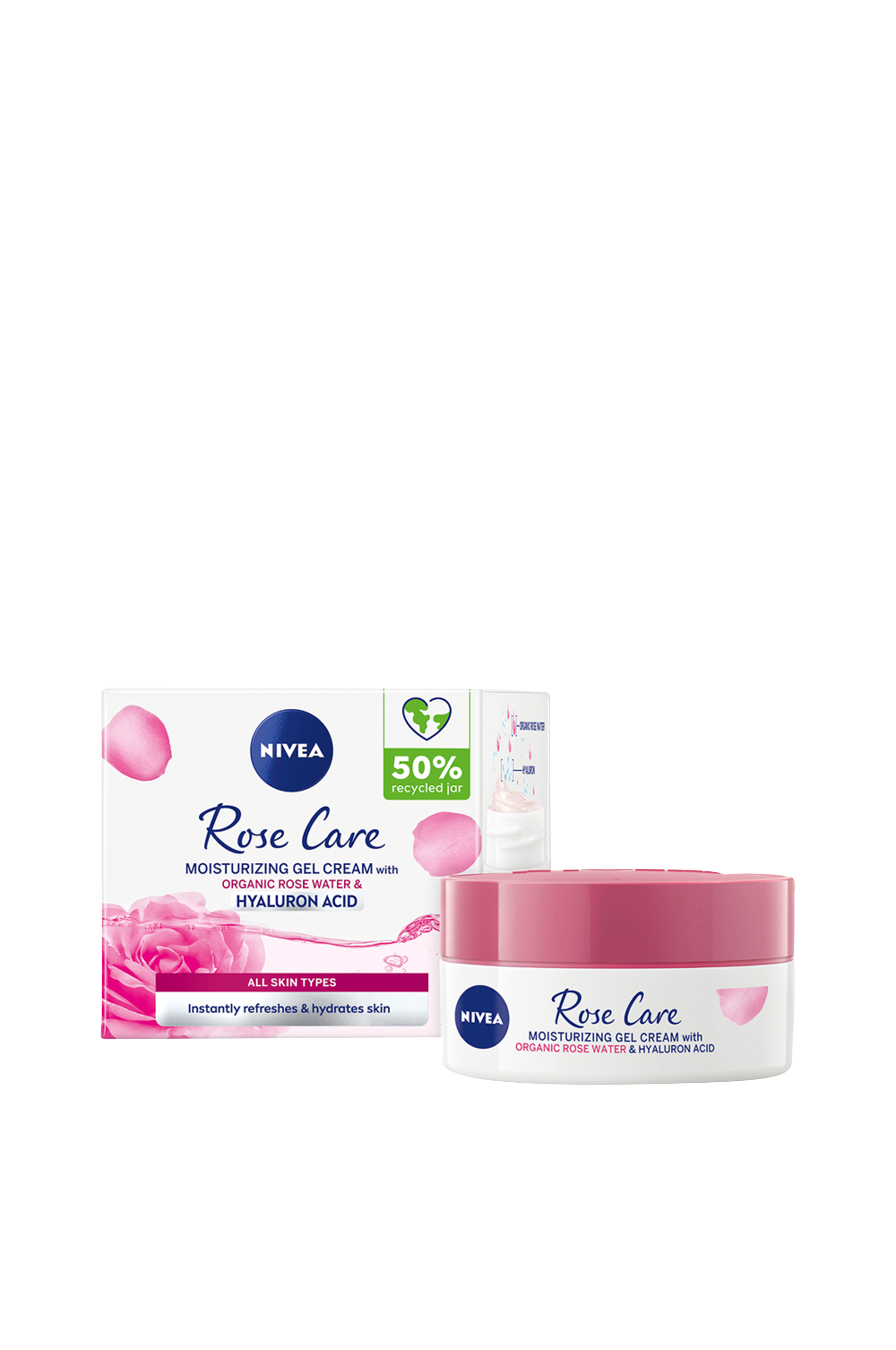 NIVEA Rose Care Moisturizing Gel Cream sisältää ekologista ruusuvettä ja hyaluronihappoa, joka kosteuttaa ihoa jopa 48 tuntia. Päivävoiteessa on ihana geelimäinen koostumus, joka imeytyy nopeasti ihoon ja antaa terveen hehkun. Kasvovoiteessa on ihana ruusujen tuoksu. Sopii kaikille ihotyypeille, myös herkälle iholle. Kokeile Rose Care Moisturizing Gel Cream -geelivoidetta saadaksesi pehmeän ja raikkaan tuntuisen ihon. Tuote on dermatologisesti testattu.