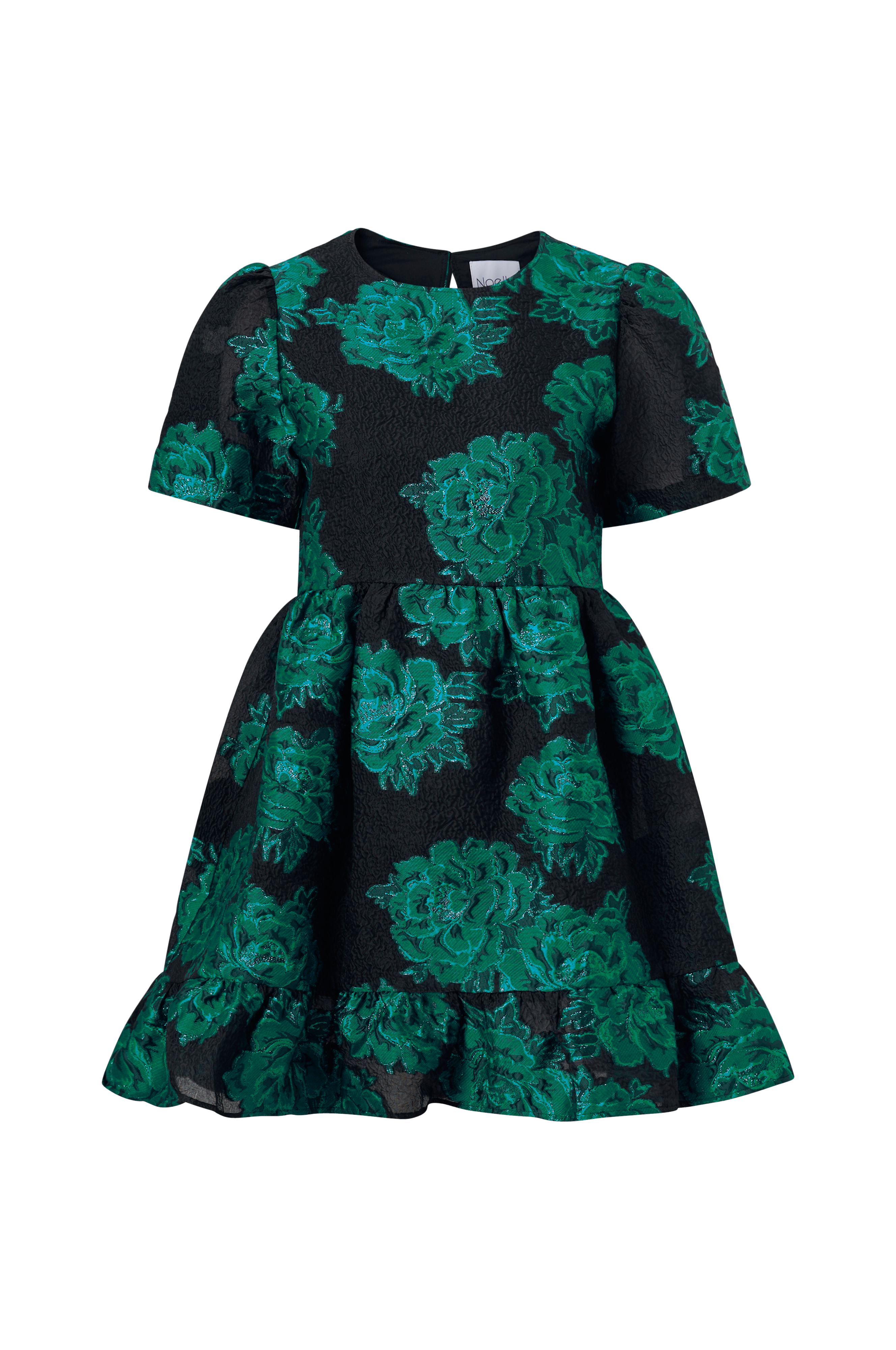 • Jacquard-neuloksinen mekko• Kimalteleva, kimalteleva kangas• Löysä istuvuus• Pyöreä kaula-aukko• Kudottu vuori• Halkio napilla niskan kohdalla• Lyhyet bubble-hihat• Sulkuläppä vyötäröllä rypytyksellä• Röyhelö alahelmassa• Pituus: 87 cm koossa S