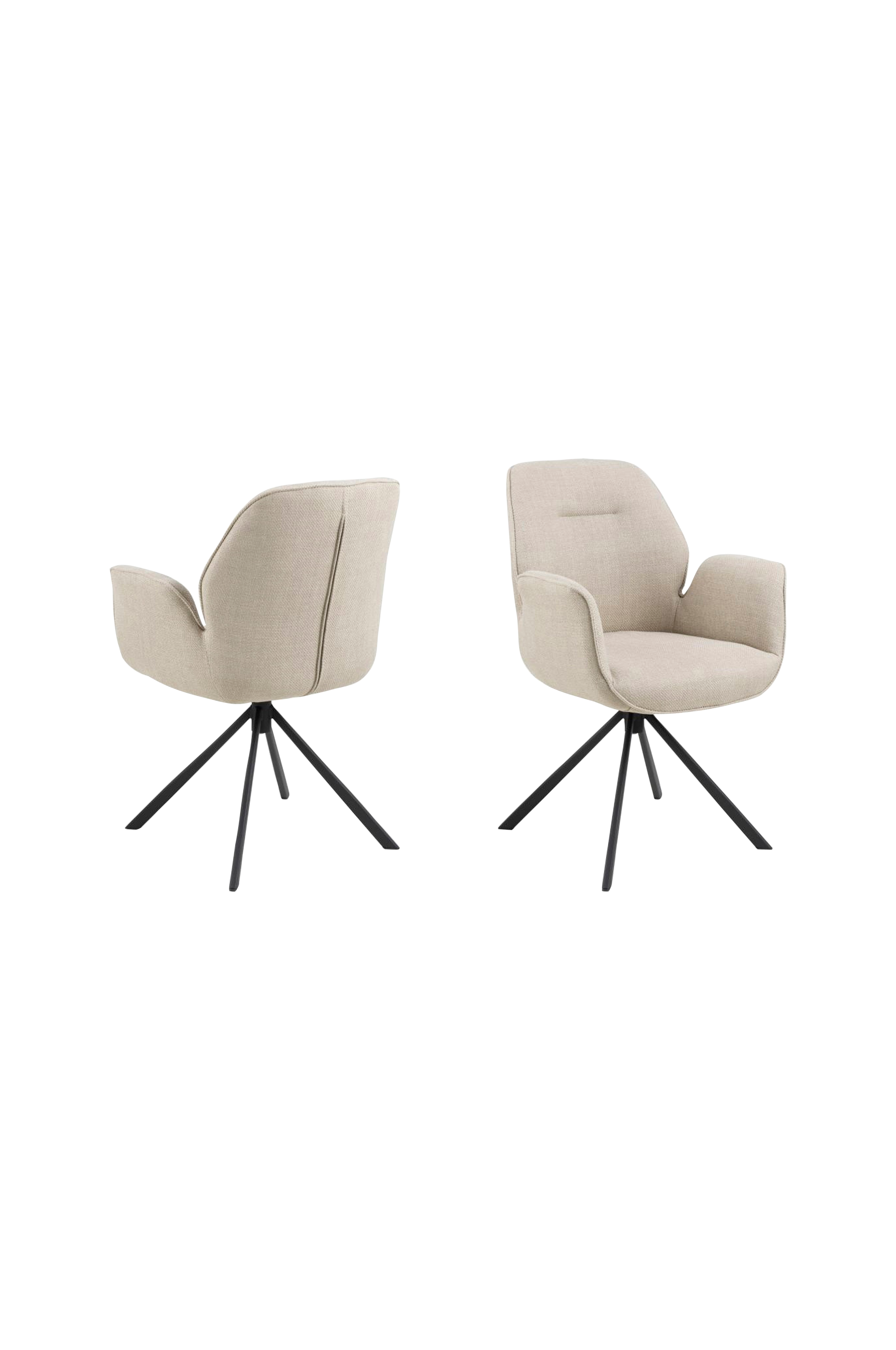 Tämä käsinojilla varustettu ruokapöytätuoli, jota luonnehtii sen tyypillinen siluetti ja tyylikkyys, sopii täydellisesti jokaiseen moderniin kotiin. Istuin on verhoiltu bouclé-kankaalla, joka antaa päälliselle strukturoidun kiharan ilmeen. Ulkonäön viimeistelemiseksi tuoli seisoo 4-tähtisellä metallijalustalla. Tee olosi mukavaksi ja nauti hetkestä.
