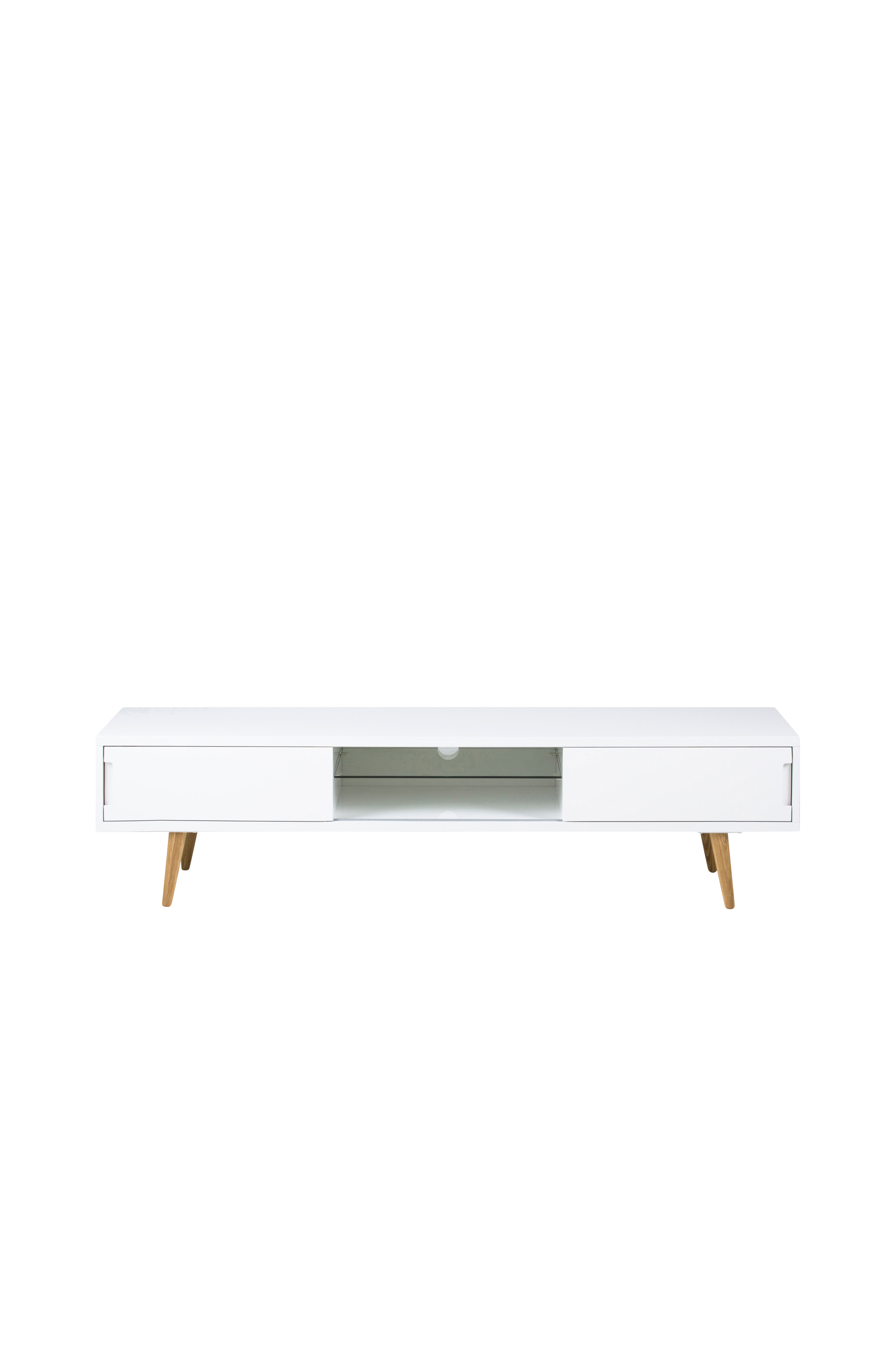 Tyylikäs, korkeakiiltoinen TV-taso. 2 ovea ja 1 kirkas lasihylly. Taso tarjoaa paljon säilytystilaa TV:n yhteyteen. Mitat: Korkeus: 46 cm. Leveys: 180 cm. Syvyys: 45 cm. Materiaali: saarniviilua ja MDF-levyä, jalat vankkaa saarnea. Toimitetaan osina.