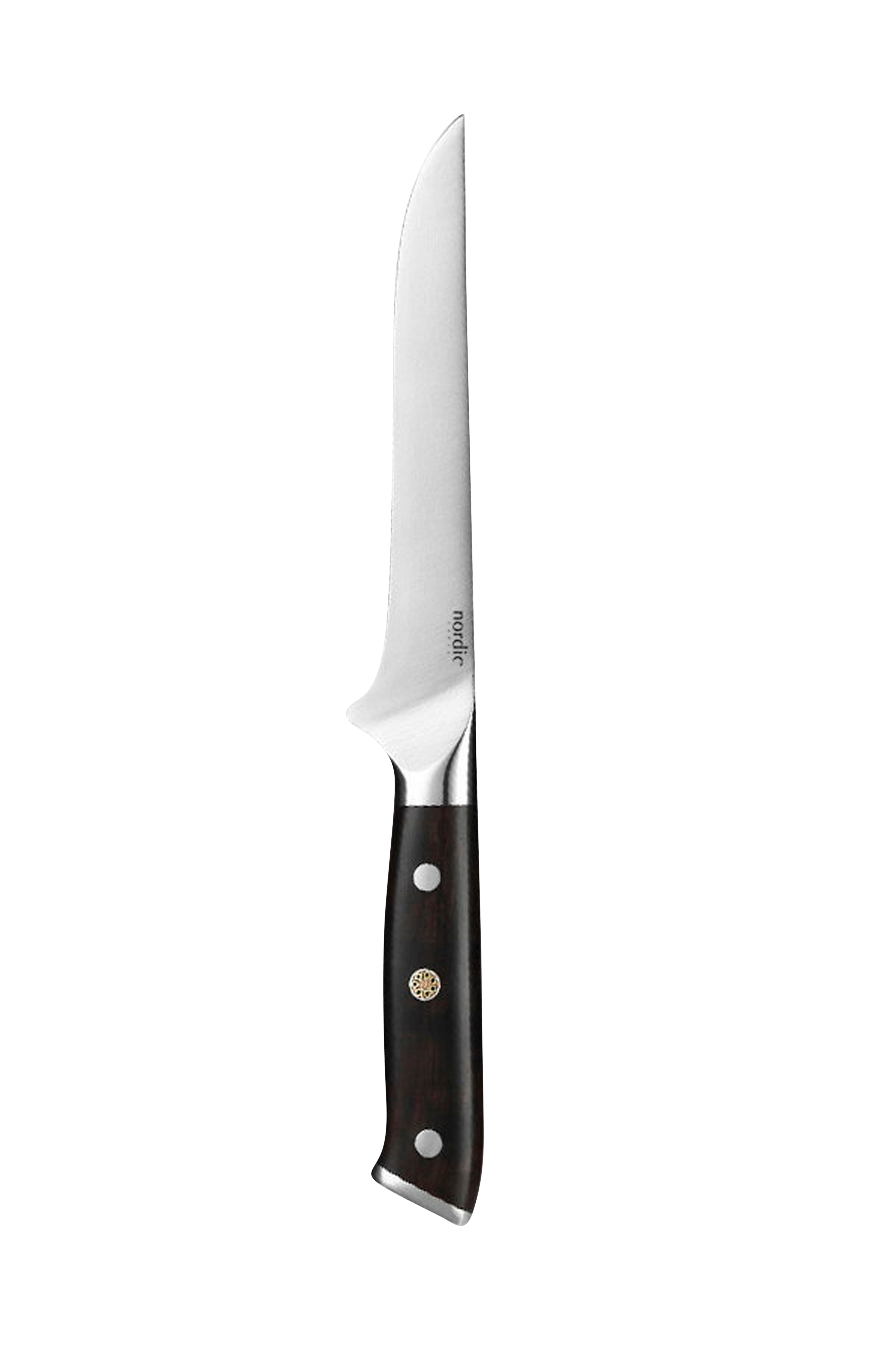 Nordic Chefs -fileointiveitsellä voi fileoida kalan, leikata pihvin tai suuren paistin. Fileointiveitsi on kapea ja erittäin terävä, mikä tekee siitä todella tarkan keittiöveitsen. Nordic Chefs -mallisto on valmistettu saksalaisesta ruostumattomasta teräksestä 1.4116. Eebenpuukahva. Ruostumaton teräs on käsitelty erittäin korkeissa lämpötiloissa, mikä tekee teräksestä uskomattoman kestävän ja auttaa säilyttämään terävyyden. Kovuus 56-58 HRC. Ainutlaatuinen muotoilu. Erittäin terävä, 15 asteen kulma molemmilla puolilla. Ruosteen- ja korroosionkestävä. Ergonominen, hyvin tasapainoinen kahva.