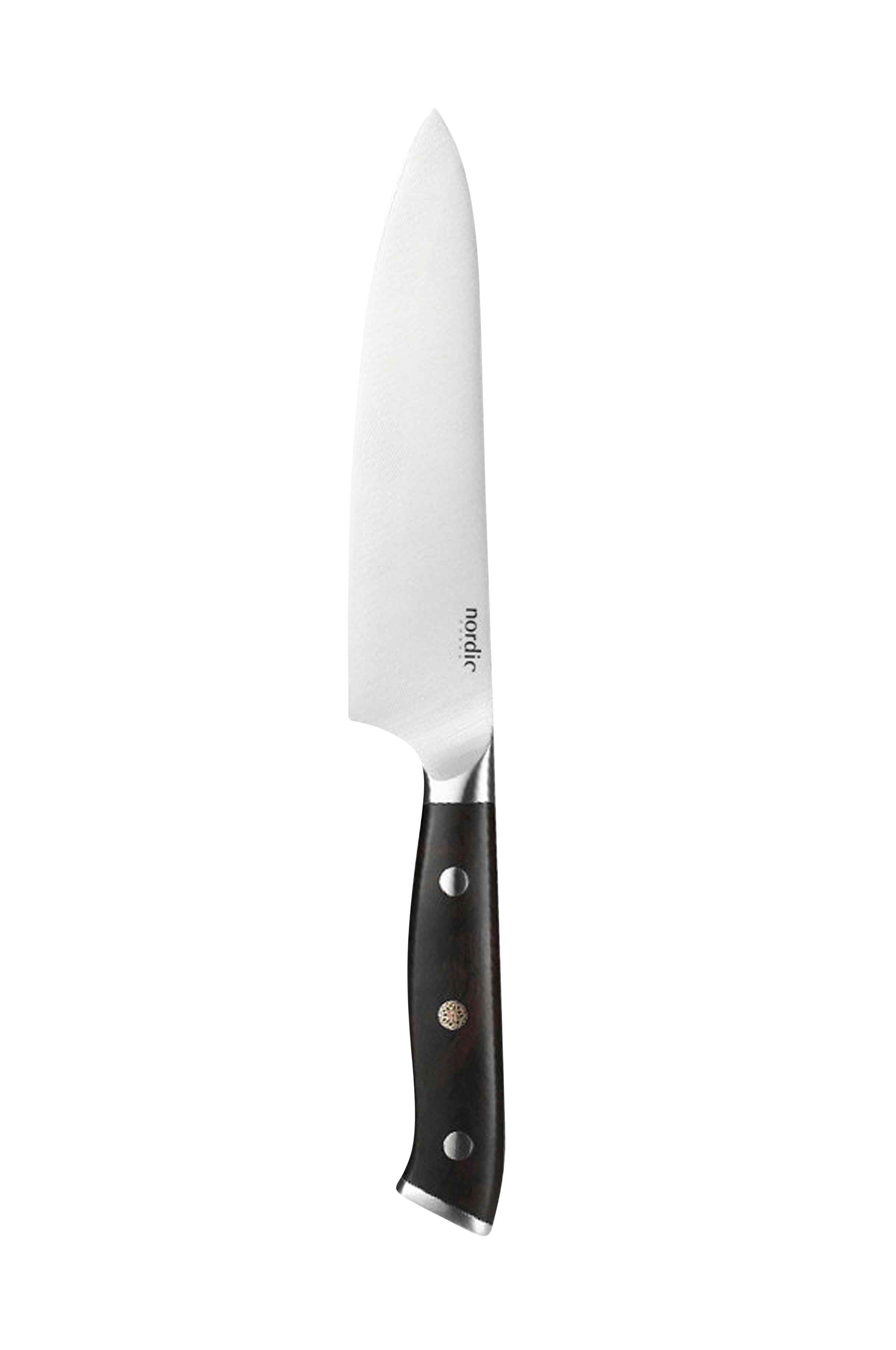 Nordic Chefs -yleisveitsi on sinulle, joka et tunne hallitsevasi samalla tavalla suurempaa kokkiveistä. Veitsi sopii kaikkiin leikkuulaudalla tehtäviin, paitsi suurten ruokatuotteiden, kuten paistien, leikkaamiseen. Samanlainen kuin kokkiveitsi, mutta pienempi ja helpompi käsitellä. Nordic Chefs -mallisto on valmistettu saksalaisesta ruostumattomasta teräksestä 1.4116. Eebenpuukahva. Ruostumaton teräs on käsitelty erittäin korkeissa lämpötiloissa, mikä tekee teräksestä uskomattoman kestävän ja auttaa säilyttämään terävyyden. Kovuus 56-58 HRC. Ainutlaatuinen muotoilu. Erittäin terävä, 15 asteen kulma molemmilla puolilla. Ruosteen- ja korroosionkestävä. Ergonominen, hyvin tasapainoinen kahva.