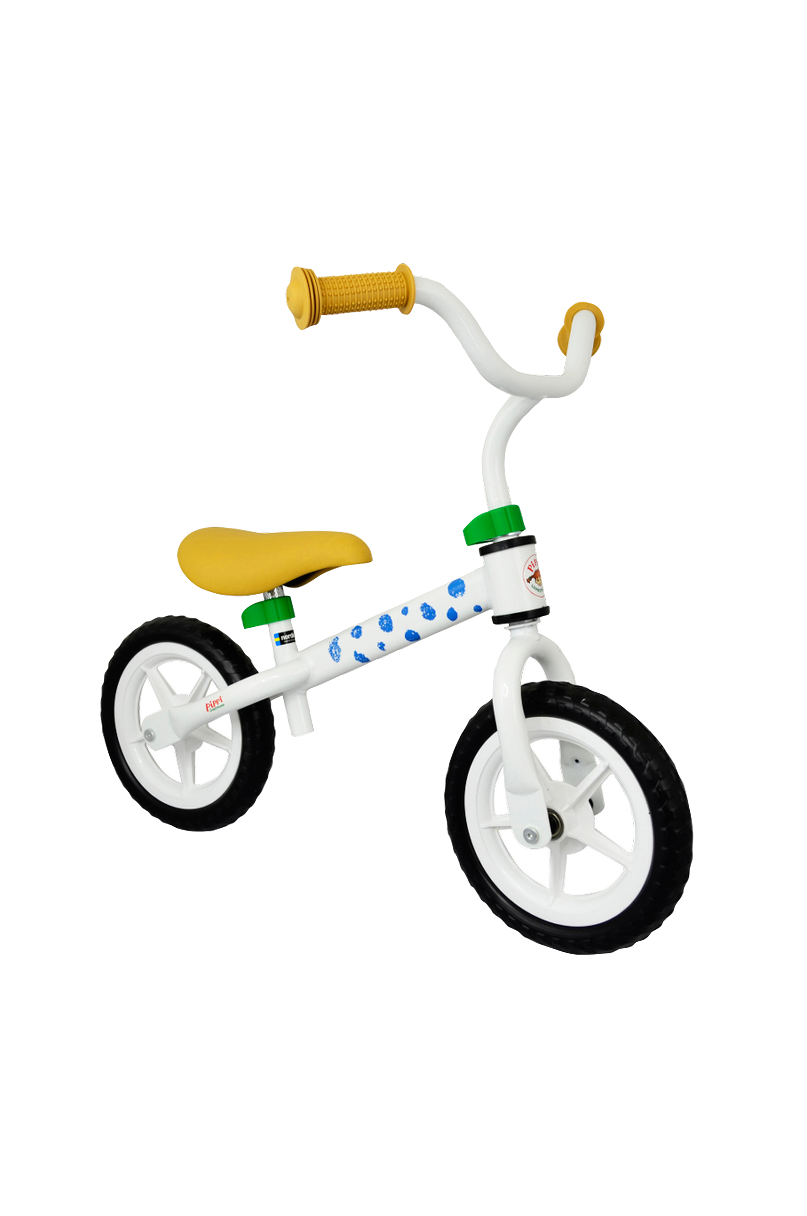 Tyylikäs Peppi-tasapainopyörä, jossa on hiljaiset kuulalaakereilla varustetut pyörät, massiiviset renkaat EVA-kumia ja kestävä akryylimaali.