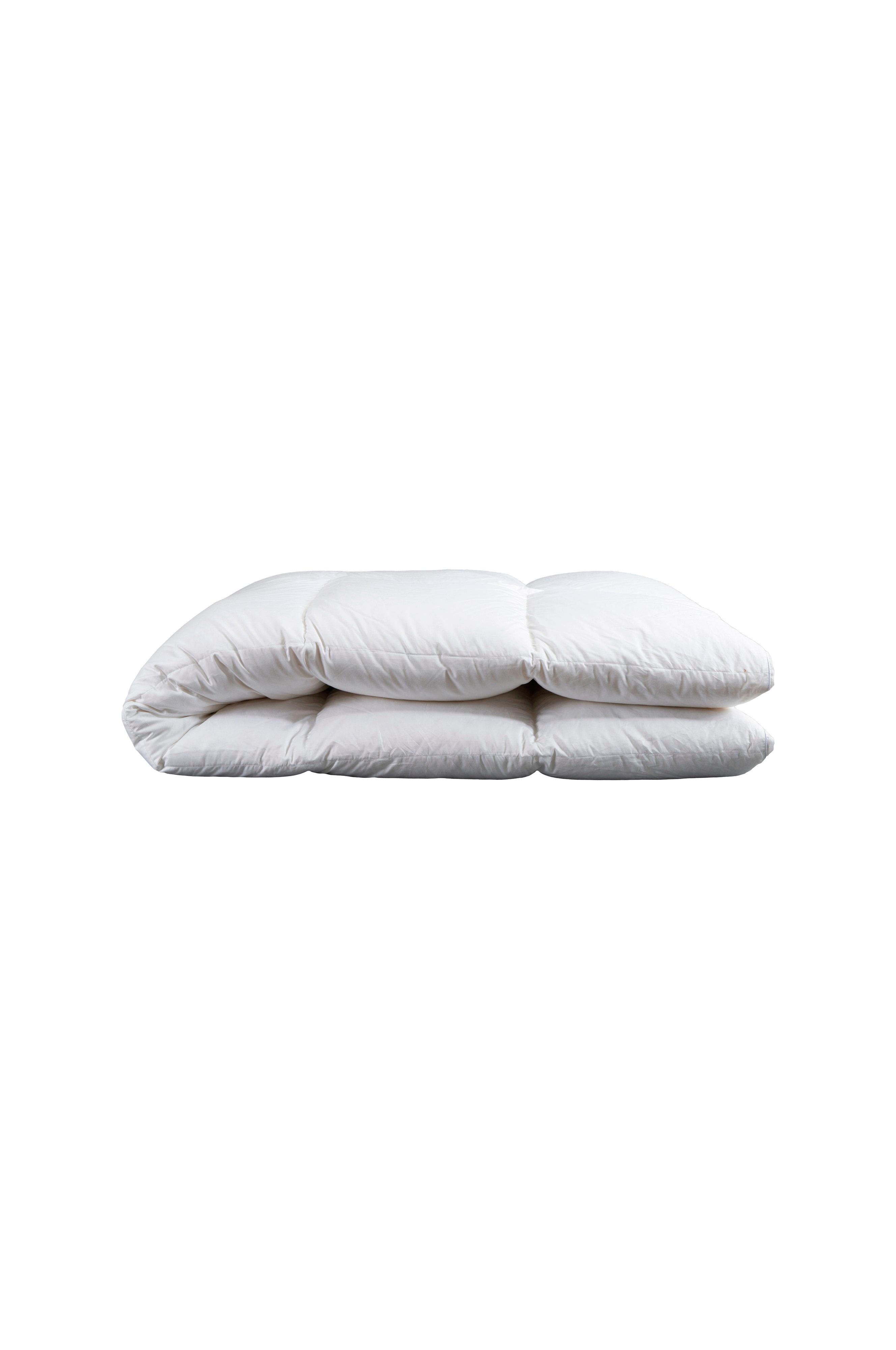 Tämä on täydellinen talvinen mukavuus niille, jotka tuntevat aina hieman enemmän kylmää. Pehmeä peitto on erityisen paksu, mutta silti tarpeeksi kevyt tuntumaan pehmeältä ja ylelliseltä. Sen mukava paino tarjoaa rauhoittavan, koteloivan tunteen, kun taas eurooppalainen hanhenuntuva säilyttää lämmön ja tarjoaa tasaista, mukavaa lämpöä koko yön ajan. 90 % eurooppalaista hanhenuntuvasta ja 10 % pienistä höyhenistä koostuva peitto on painava, mikä takaa rauhallisen, tasaisen tunteen peiton alla. Päällinen on puuvillabatistia: kevyt, tiheästi kudottu ja silkinpehmeä, kevyt ja erinomaisen hengittävä optimaalisen mukavuuden takaamiseksi - jopa silloin, kun lämpötila laskee selvästi pakkasen puolelle. Täytevoima: 750 Cuin.