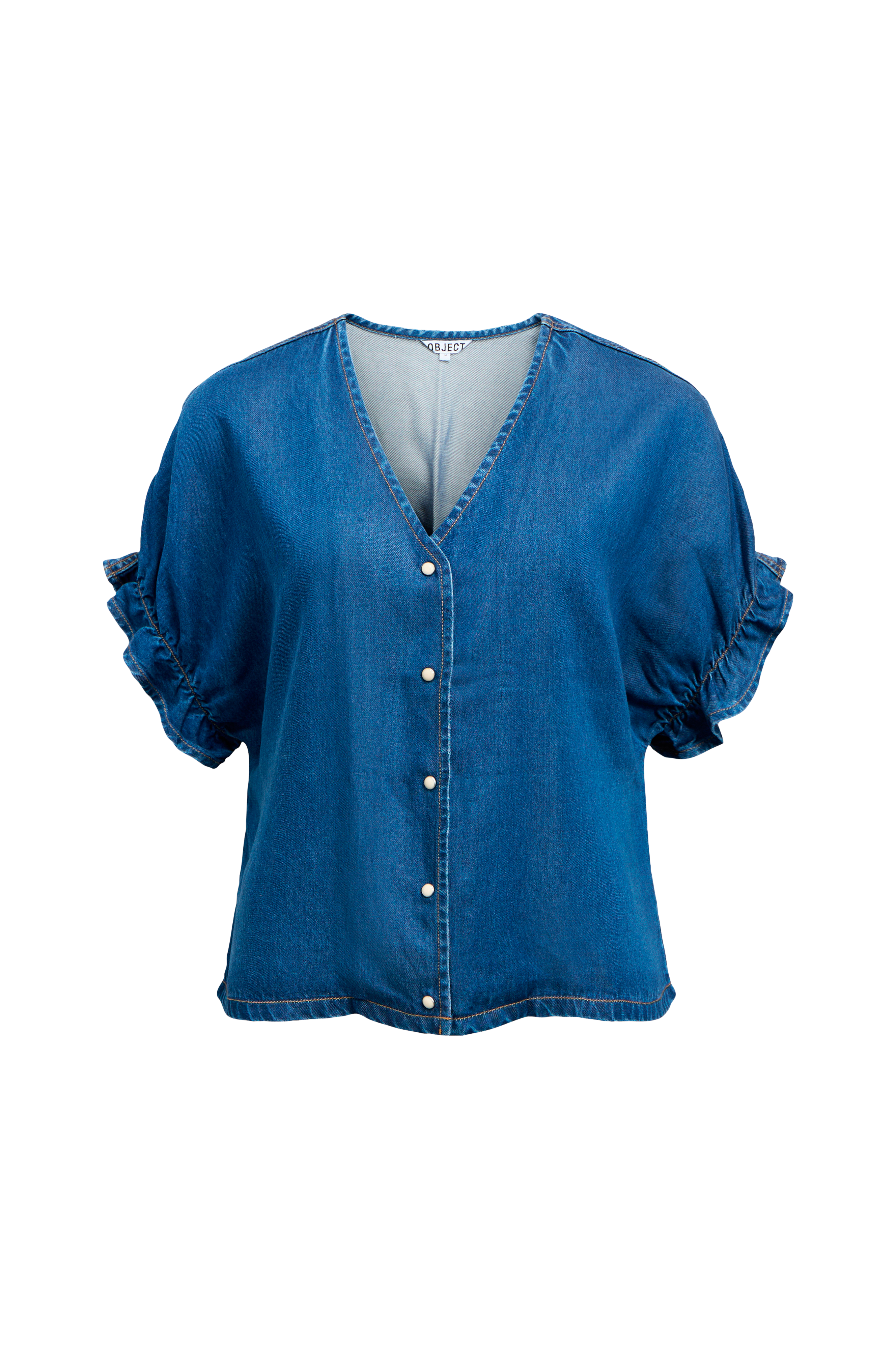 • Pusero denimistä• V-muotoinen pääntie• Lyhyet hihat elastisilla hihansuilla• Nepparit edessä