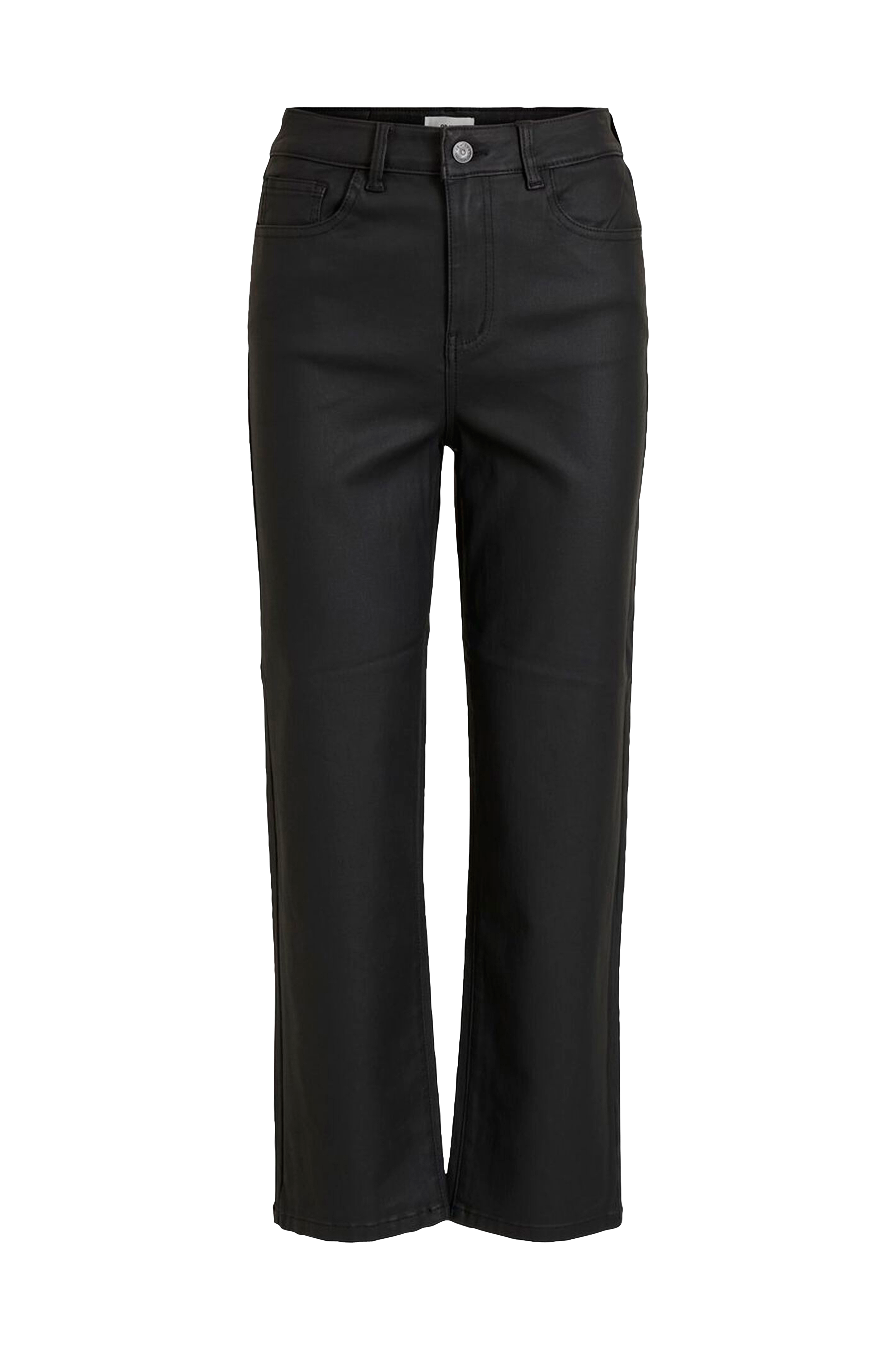 Object objMoji Belle Coated 111 -farkut. Korkea vyötärö ja suorat, leveät lahkeet. Vyötärönauhassa vyölenkit ja etuhalkiossa vetoketju. Kolme etutaskua ja kaksi takataskua. Lahkeen sisäpituus n. 68 cm koossa S.