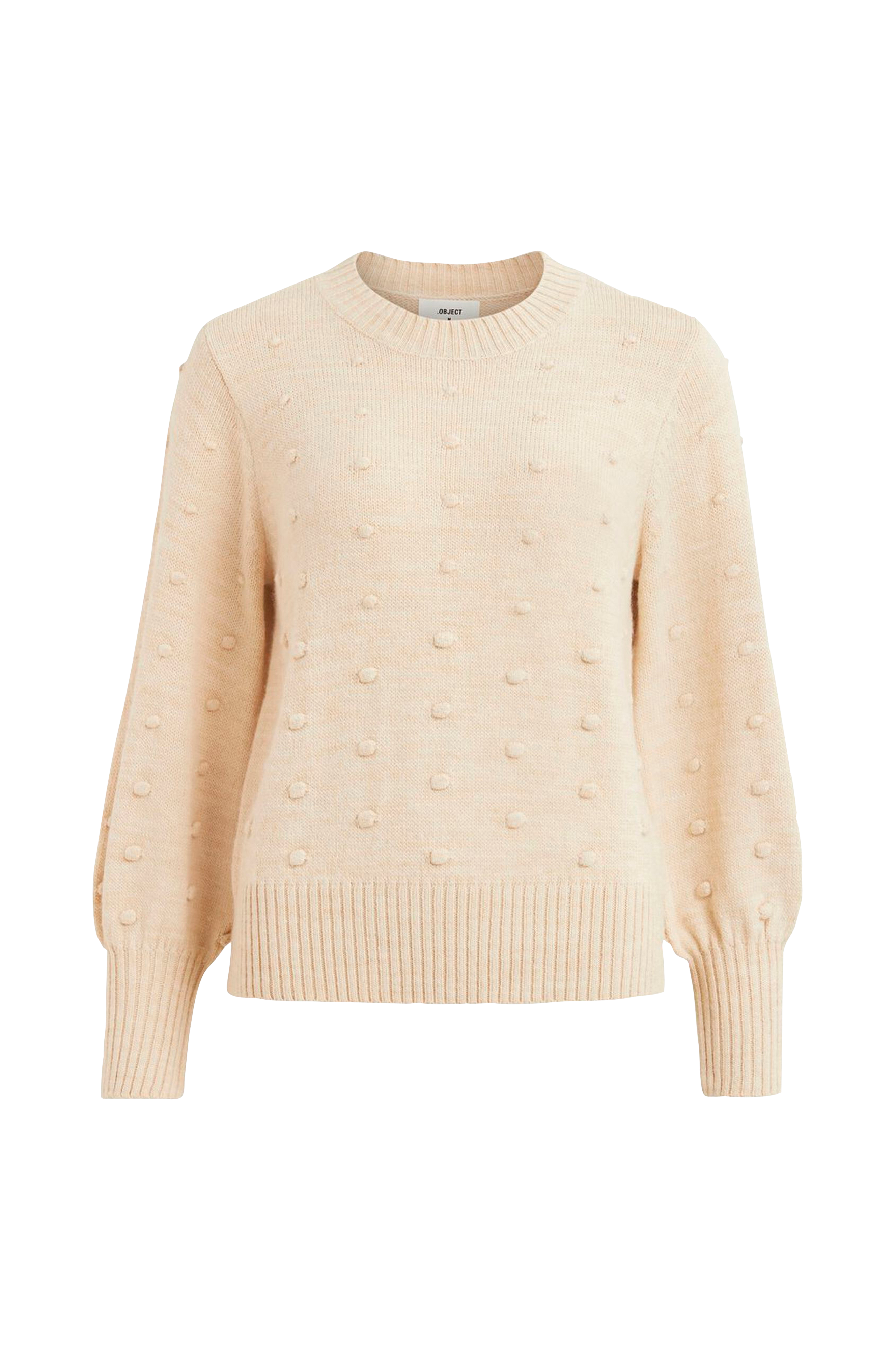 Object objBouble L/S Knit Pullover Noos -neulepusero villasekoitetta. Struktuuripilkut ja pallomaiset hihat. Pyöreä pääntie, jossa joustinneulereuna. Resori hihansuissa ja helmassa.