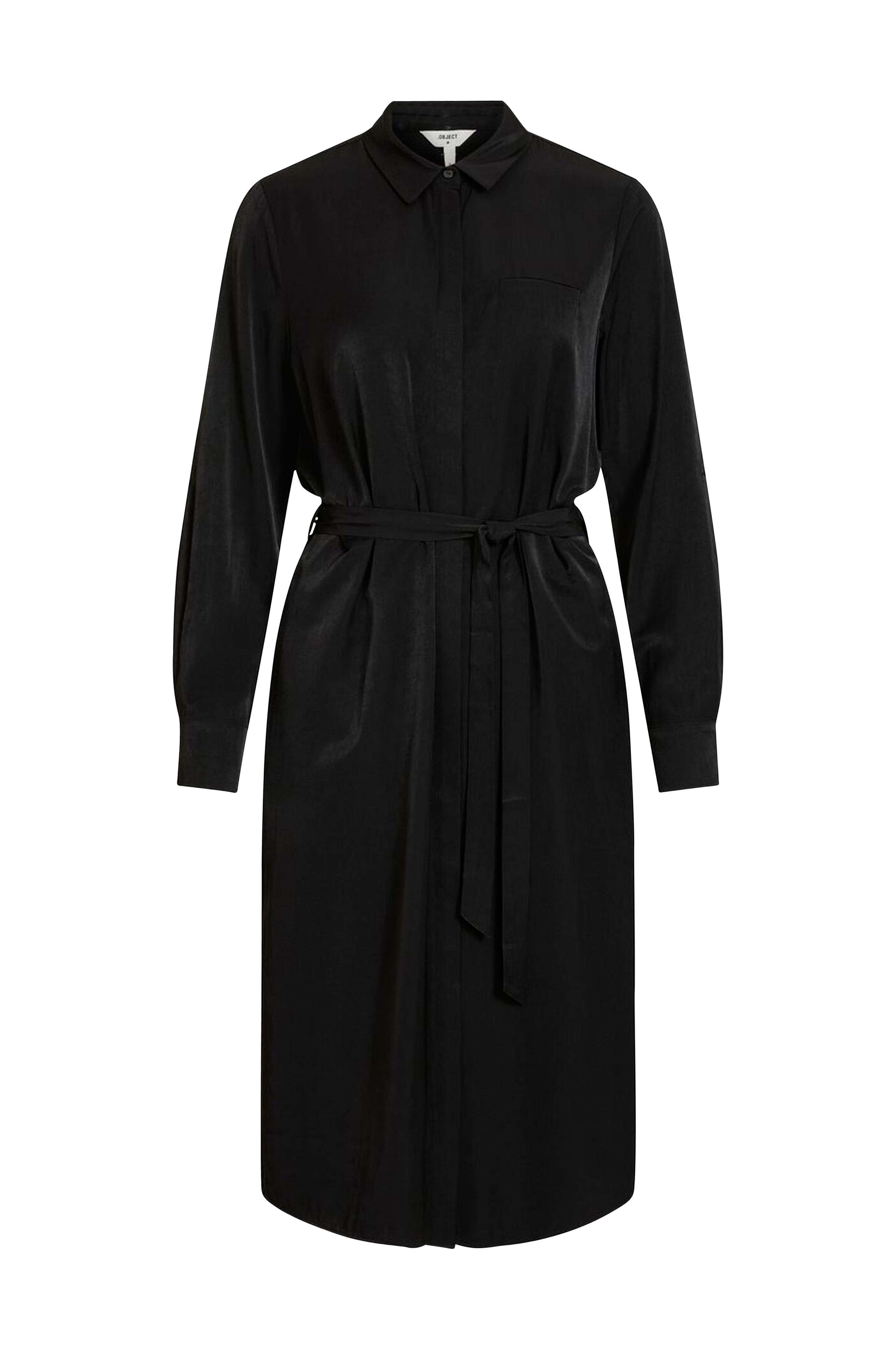 Object objEileen L/S Shirt Dress -paitamekko. Suora malli, pieni kaulus ja piilonapitus edessä helmaan asti. Upotettu valerintatasku ja vyötäröllä vyölenkit ja solmimisvyö. Pitkät hihat, hihansuissa kalvosin ja sisäpuolella tamppi käännettä varten. Kiiltävää materiaalia. Pituus n. 112 cm koossa 36.