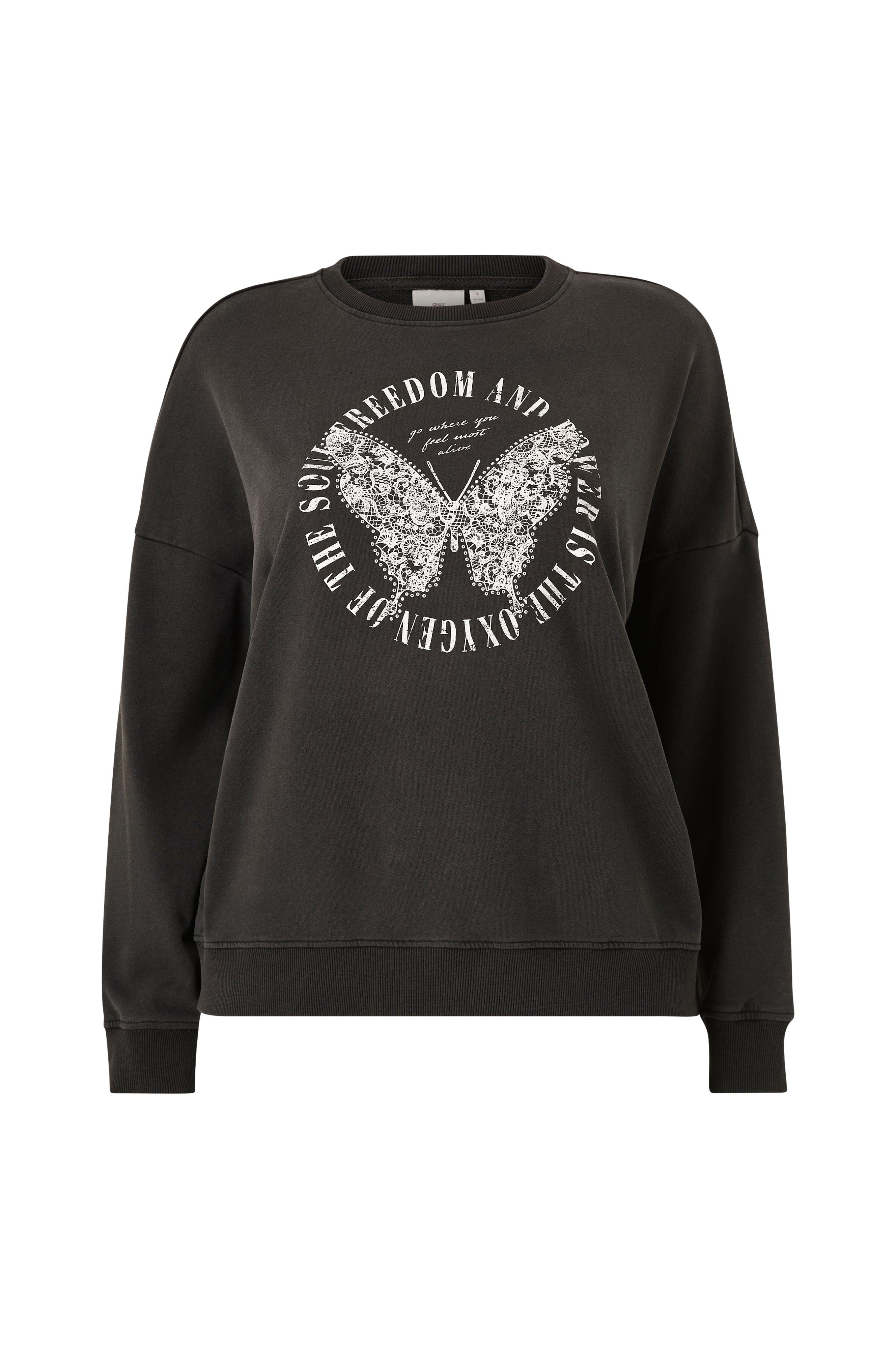 • Plus-koot• Rento, suora malli• Printti tekojalokivellä rinnassa• Pyöreä pääntie ribbineuloksella• Pudotettu olkapää pitkällä hihalla• Ribbiresori hihansuissa ja alhaalla
