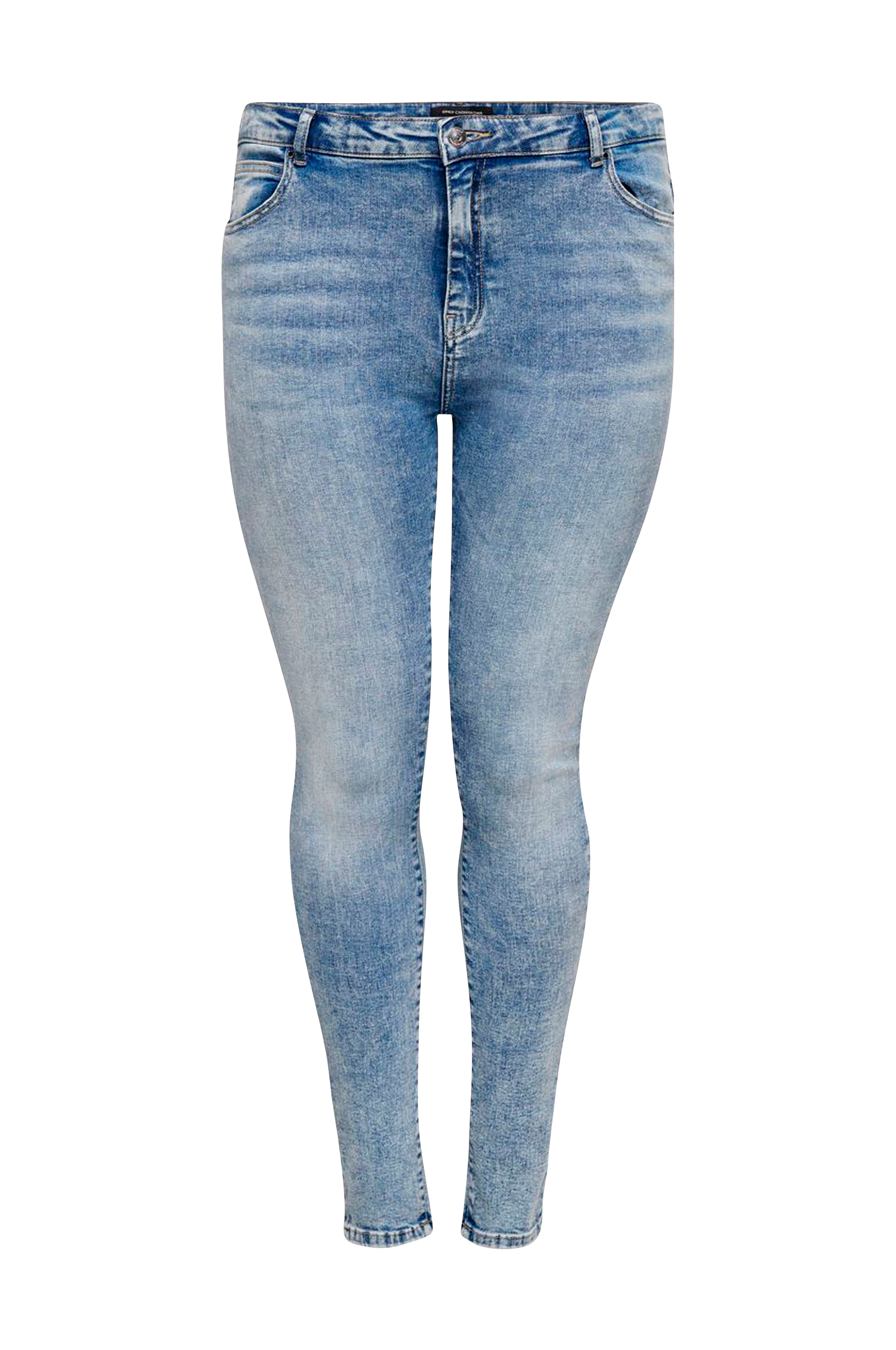Laola-farkut, joissa korkea vyötärö ja kapeat lahkeet. Viistaskumalli ja vetoketjullinen etuhalkio. Pehmeää stretchdenimiä.