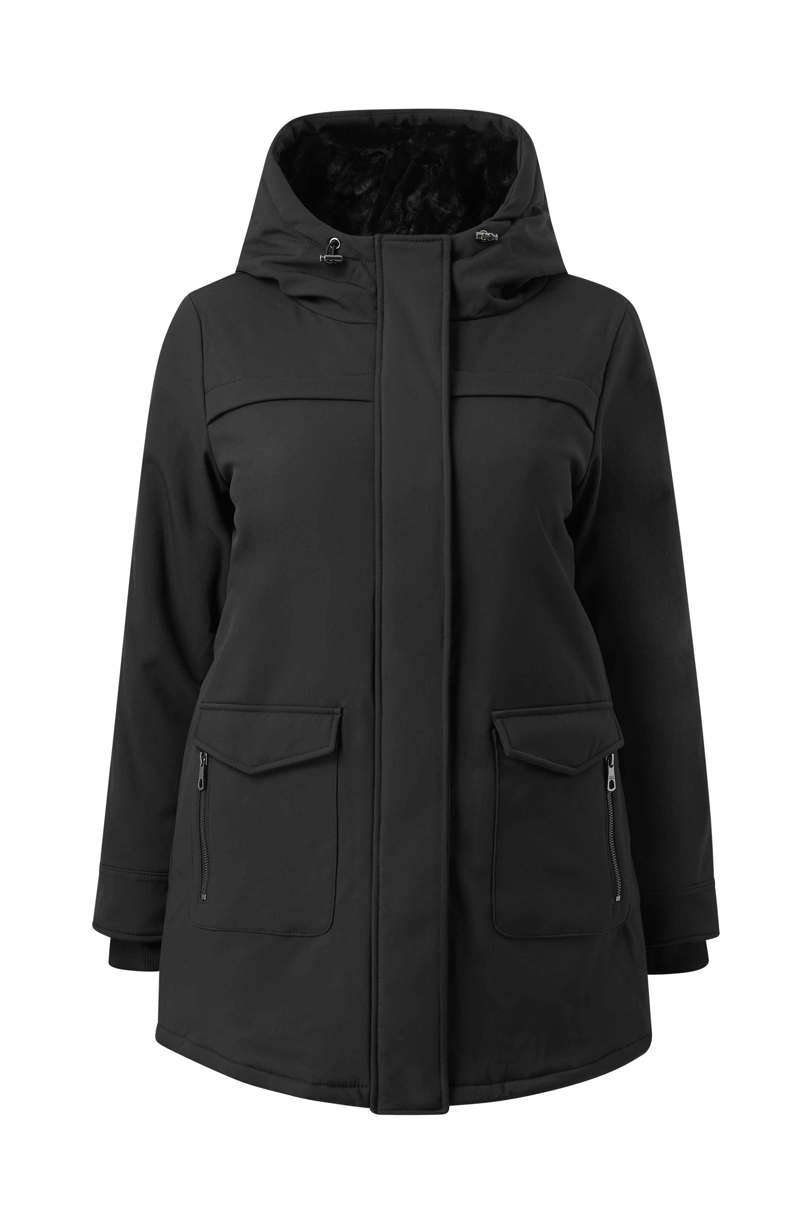 • Topattu parka • Tuulen- ja vedenpitävä ulkokangas • Kaksisuuntainen vetoketju • Tuuliläppä neppareilla edessä • Neljä etutaskua • Huppu kiristysnyörillä ja vuorilla tekoturkiksesta • Ribbiresori hihansuissa • Takaa hieman pidempi • Plus-koot • Pituus: 80 cm koossa S