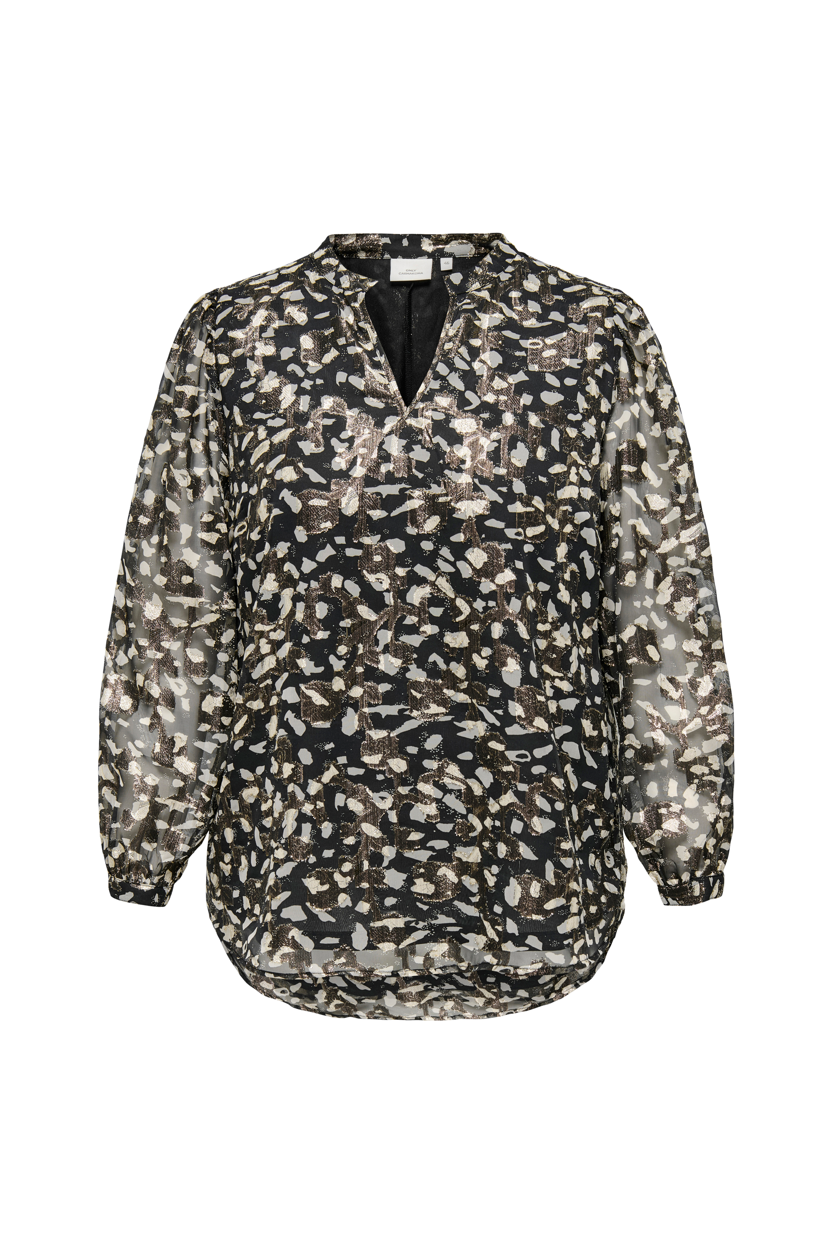 • Plus-koot• Kultakimaltava malli sifongista• Pyöreä pääntie halkiolla edessä• Pitkä bubble-hiha ohuella hihansuulla• Vuorattu
