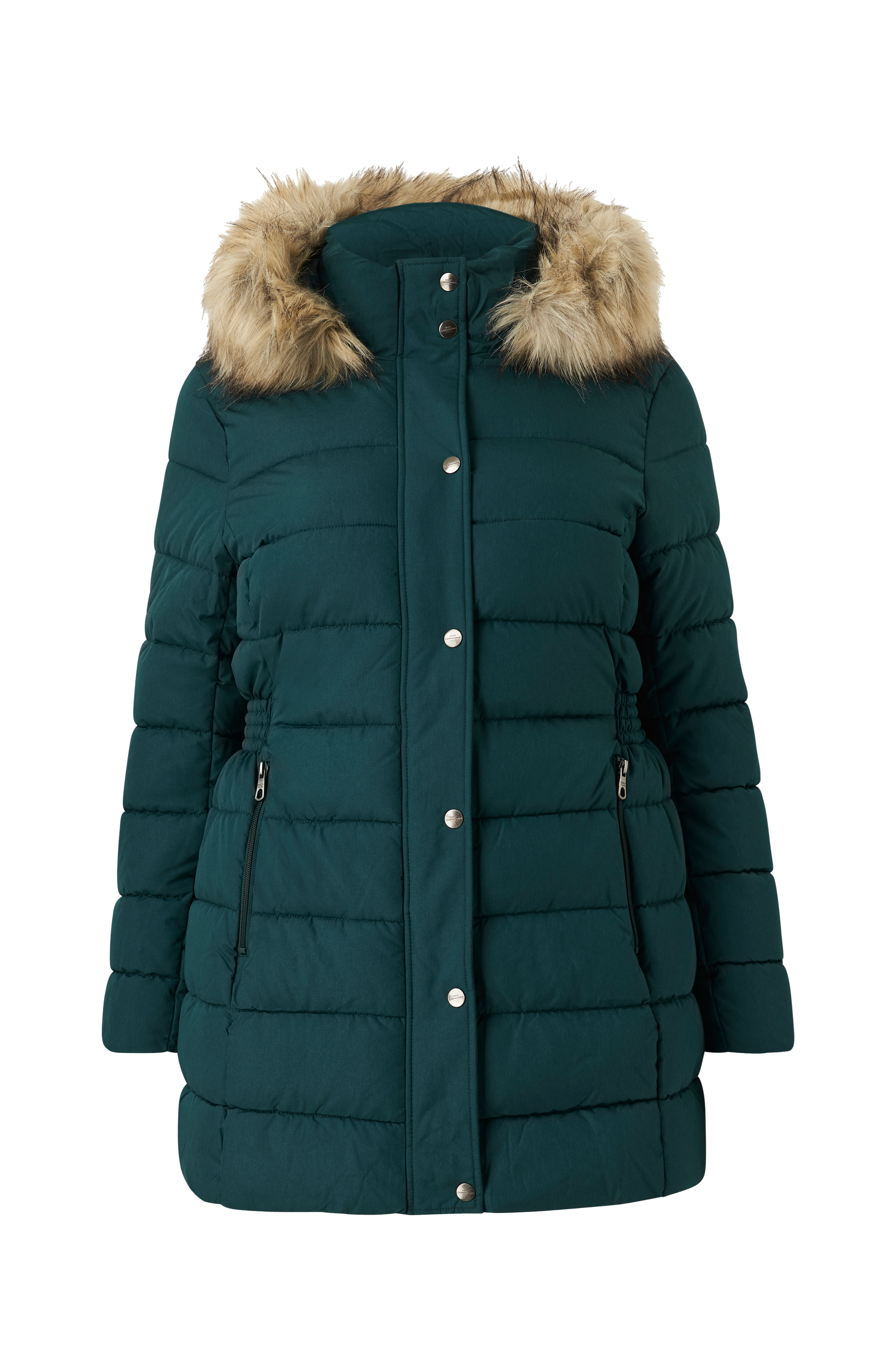 • Kiinnitetty, säädettävä huppu irrotettavalla tekoturkissomisteella