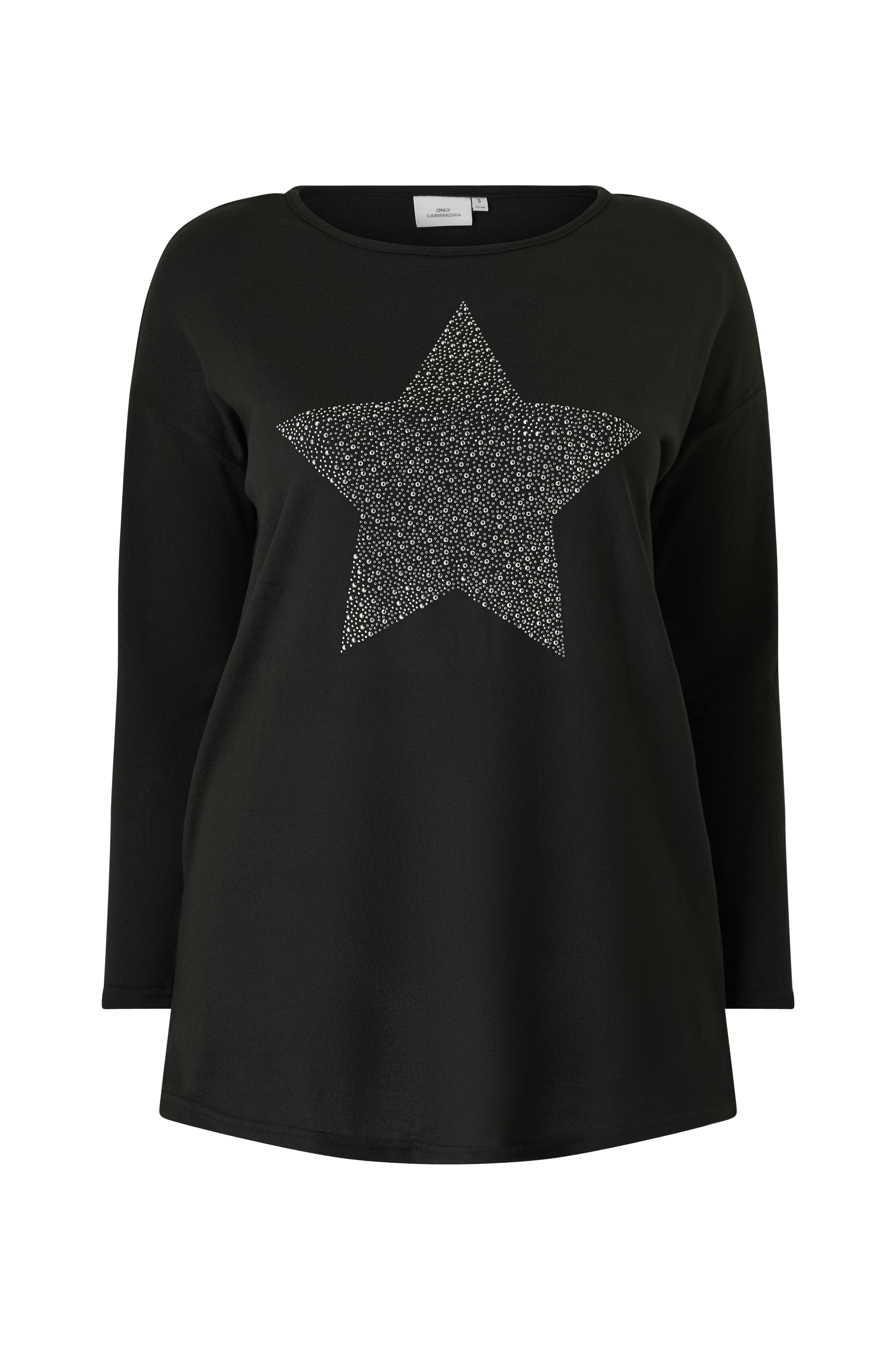 • Pitkähihainen, joustava toppi• Veneen muotoinen kaula-aukko• Kimaltelevat keinojalokivet edessä• Plus-koot