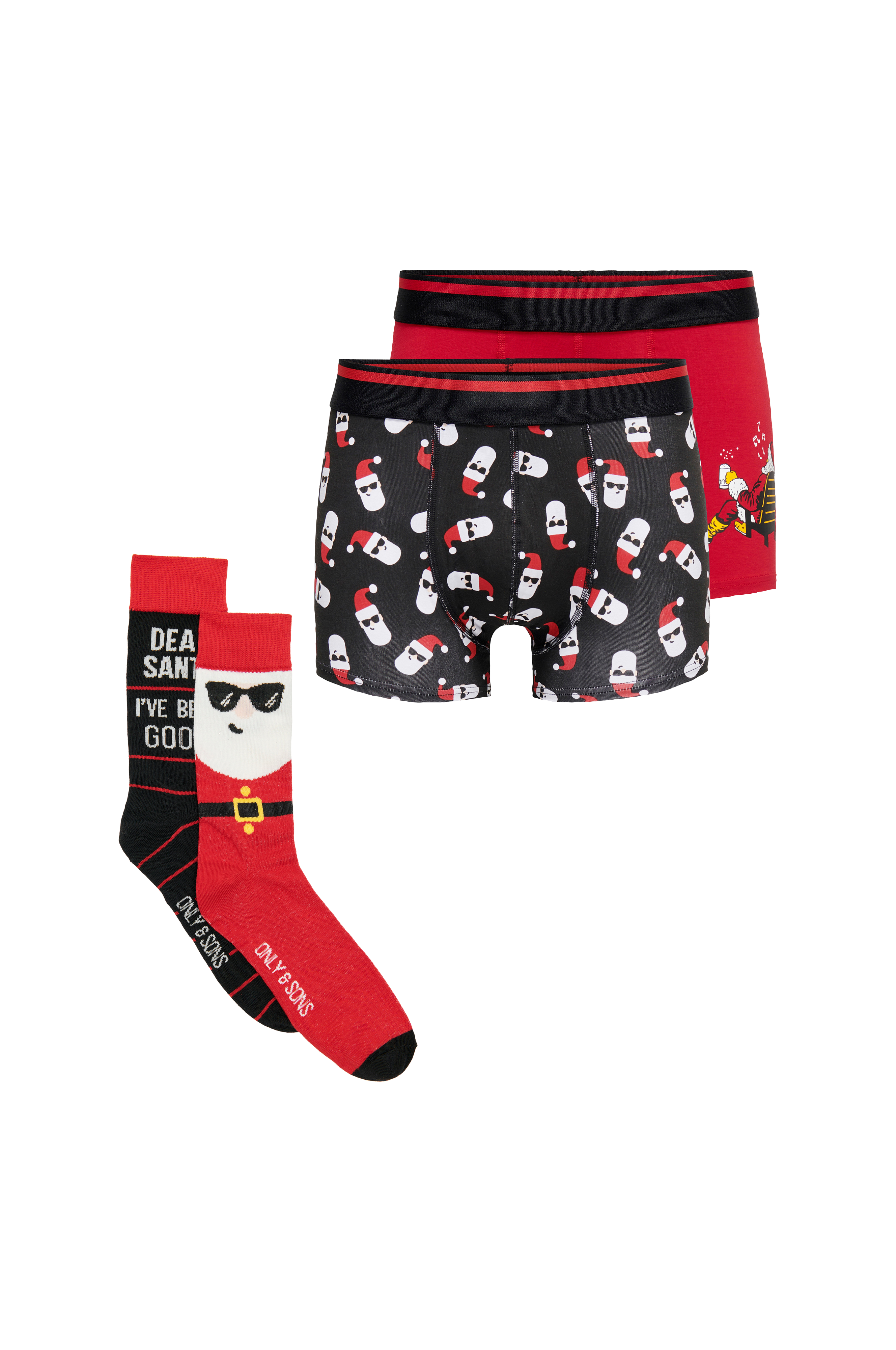 Lahjapakkaus, jossa on 2 paria sukkia ja 2 bokserishortsia.