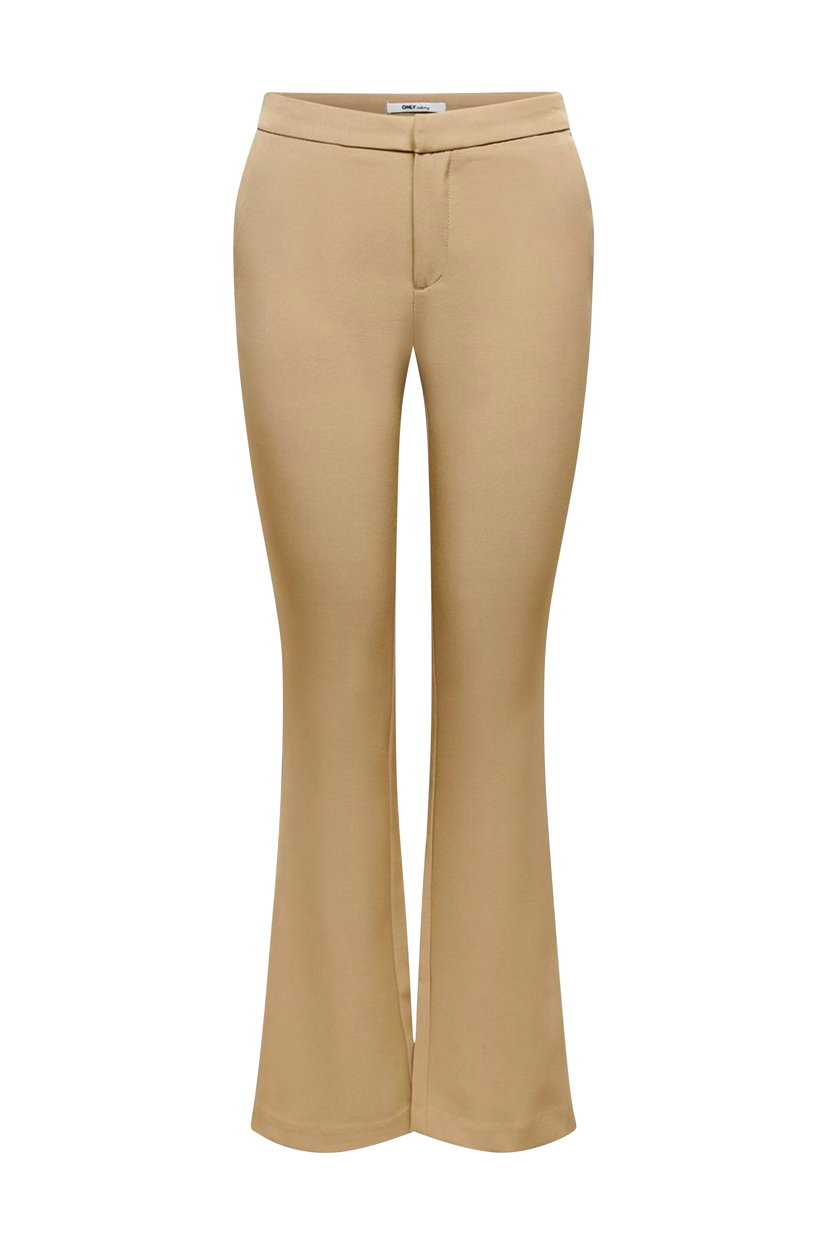 Flare-malliset housut, jossa levenevät lahkeensuut. Sileä vyötärönauha, jossa piilohakaset ja nappi. Vetoketjullinen etuhalkio. Sivutaskut.