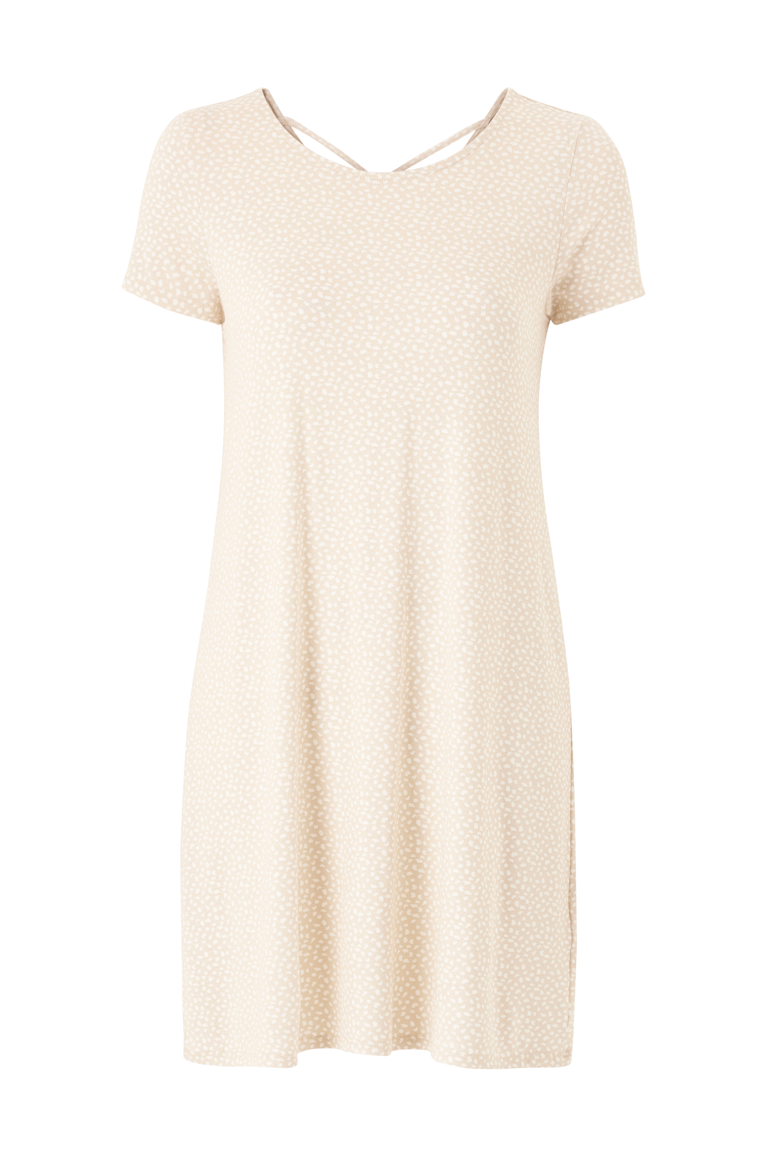 Only onlBera Back Lace Up S/S Dress -mekko erittäin joustavaa trikoota. Suora, lyhythihainen malli. V-pääntie selässä, jossa ristikkäiset nauhat. Pituus n. 90 cm koossa S.
