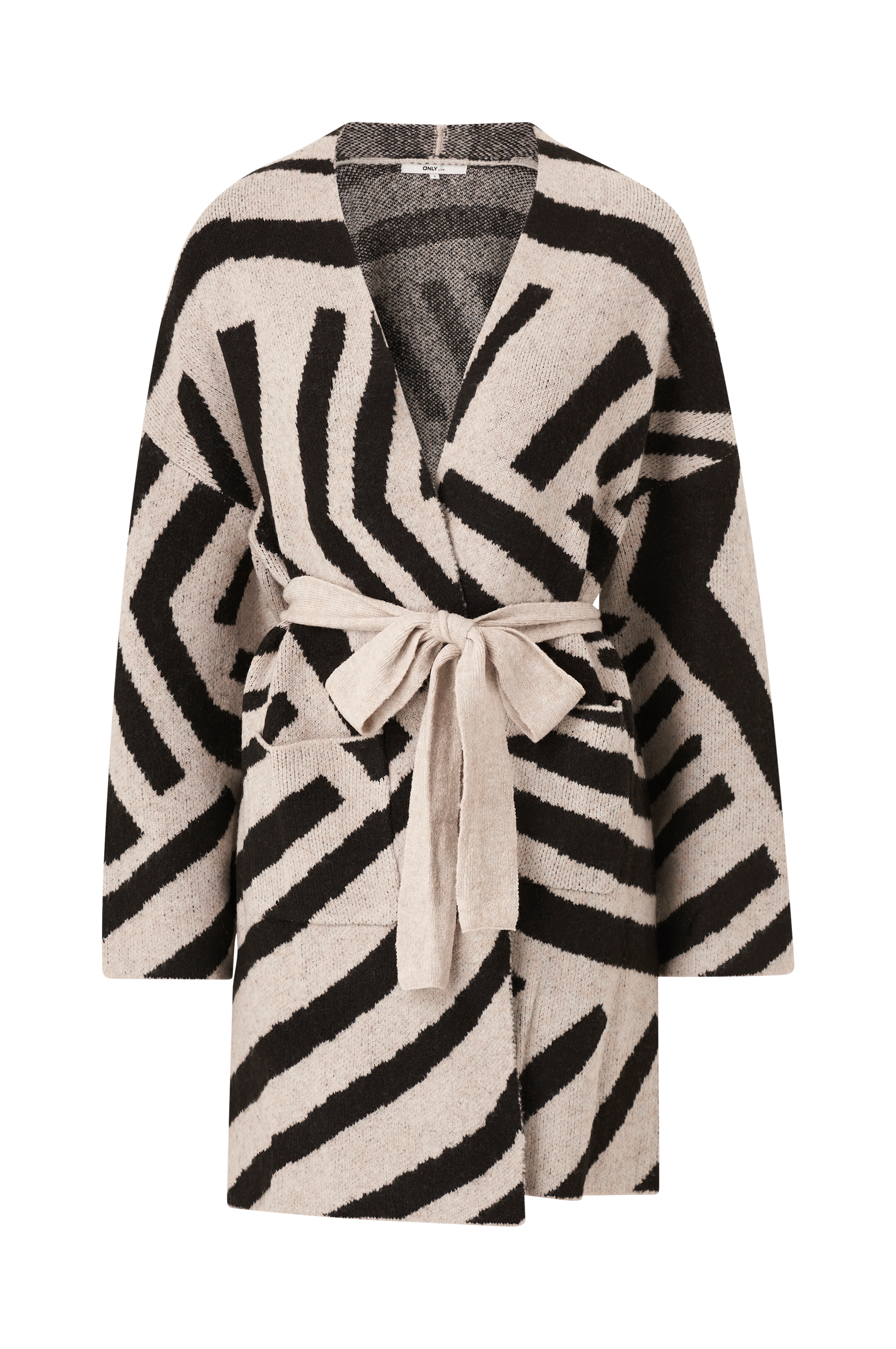 • Pitkä, kuvioneulottu malli• Silmukat itsesolmittavalla vyöllä vyötäröllä• Kaksi taskua• Pudotettu olkapää pitkällä hihalla