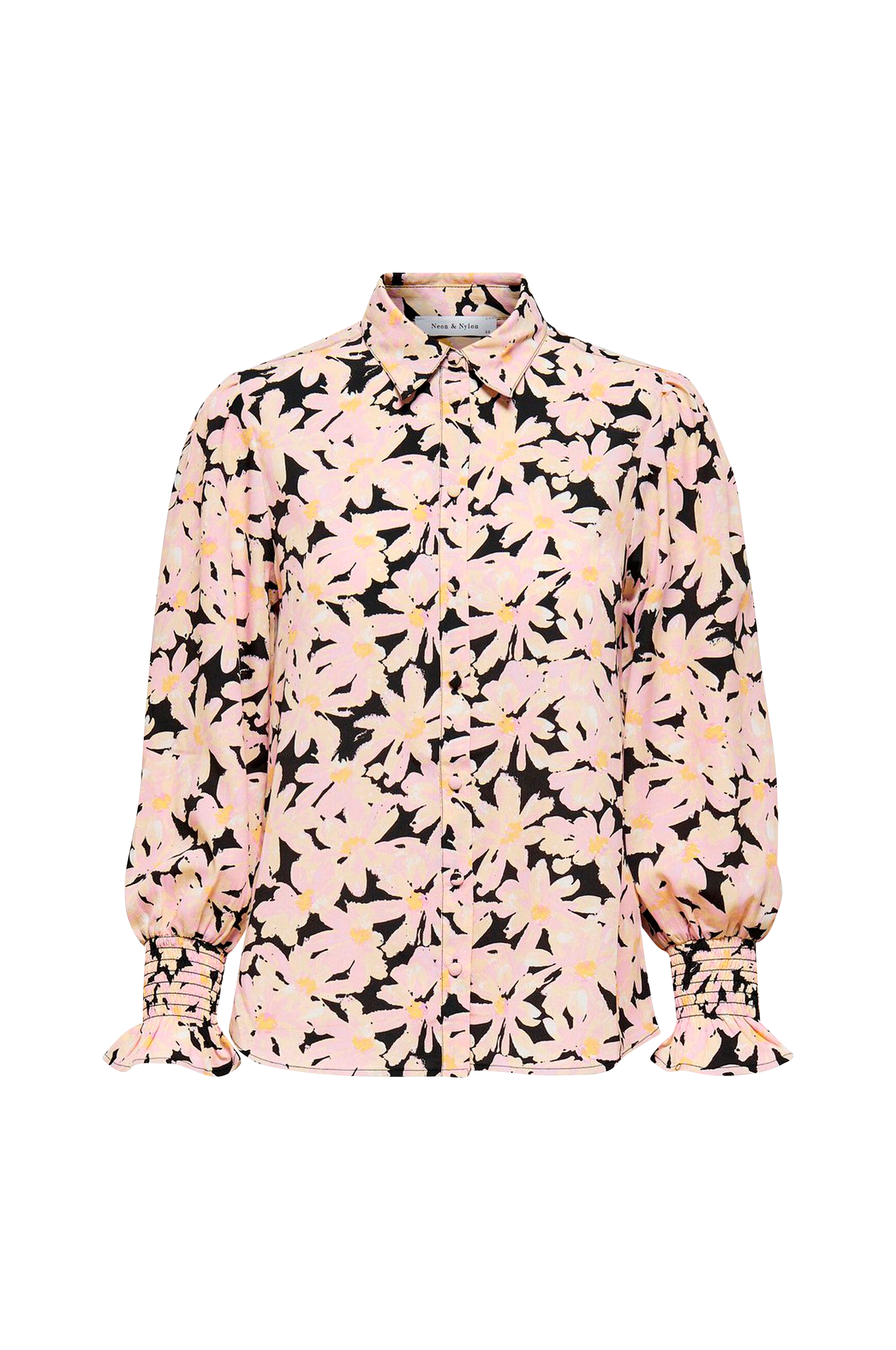 Only onlLila L/S Smock Cuff Shirt -paita. Suora malli. Pieni paidankaulus ja päällystetyt napit koko pituudelta edessä. Leveät hihat, joissa puhvi olkapäillä ja smokkirypytys hihansuissa.