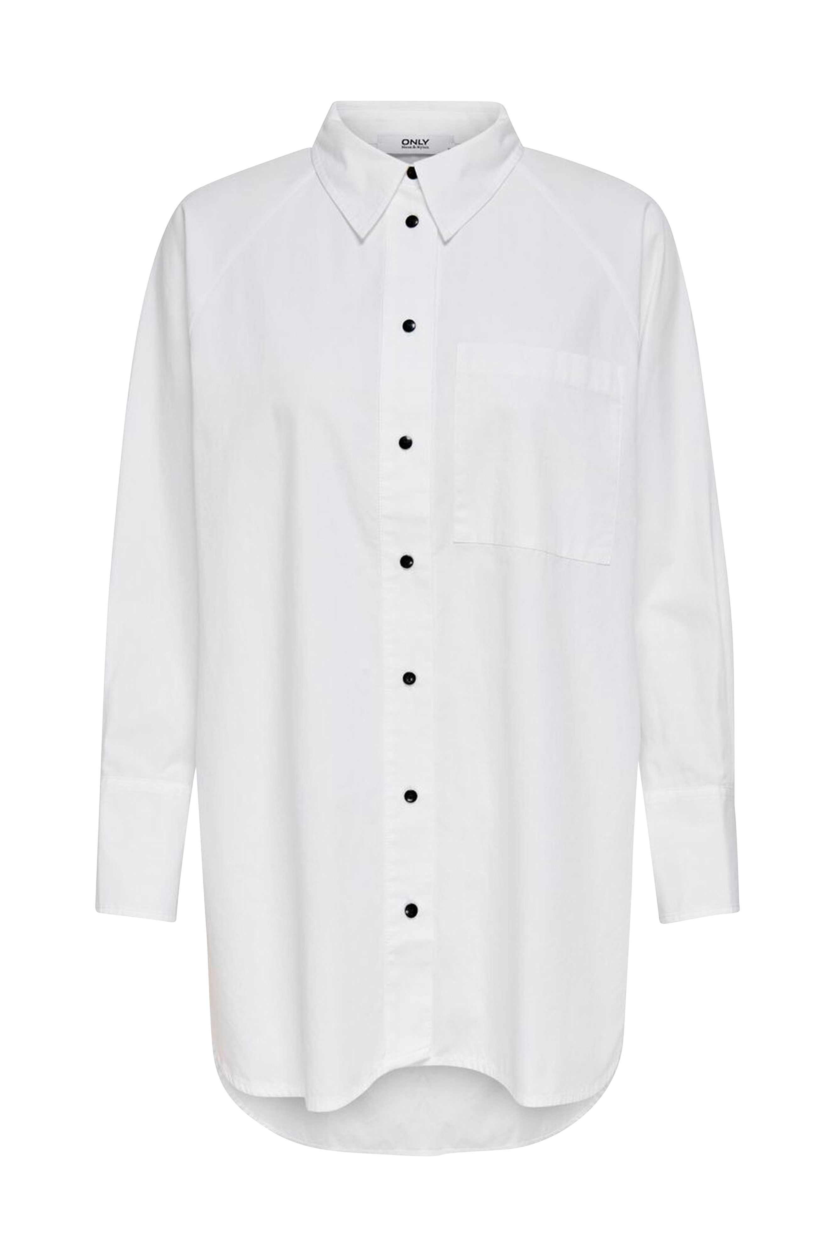 Ihana oversize-mallinen paitapusero, jossa napit ja rintatasku edessä. Raglanhihat, joissa leveä kalvosin. Helmassa pyöristetyt sivut ja sivuhalkiot. Paitapusero on pidempi takaa. Kangasta.