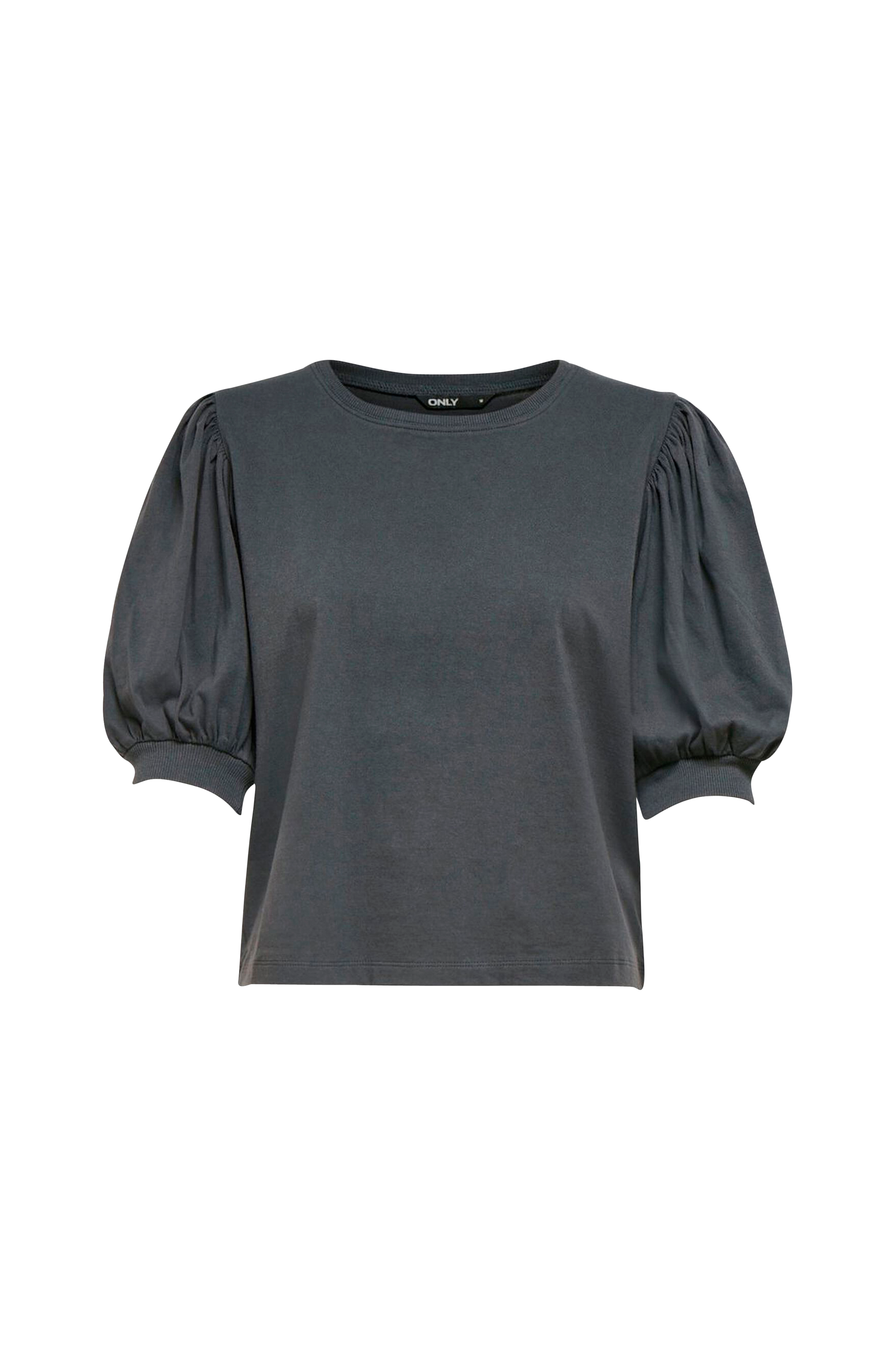 Only onlSasha 2/4 Puff Top -pusero. Suora, leveähkö malli ja pyöreä pääntie, jossa joustinneulosreunus. Puolipitkät, väljät puhvihihat, joissa joustinneulosreunus hihansuissa.