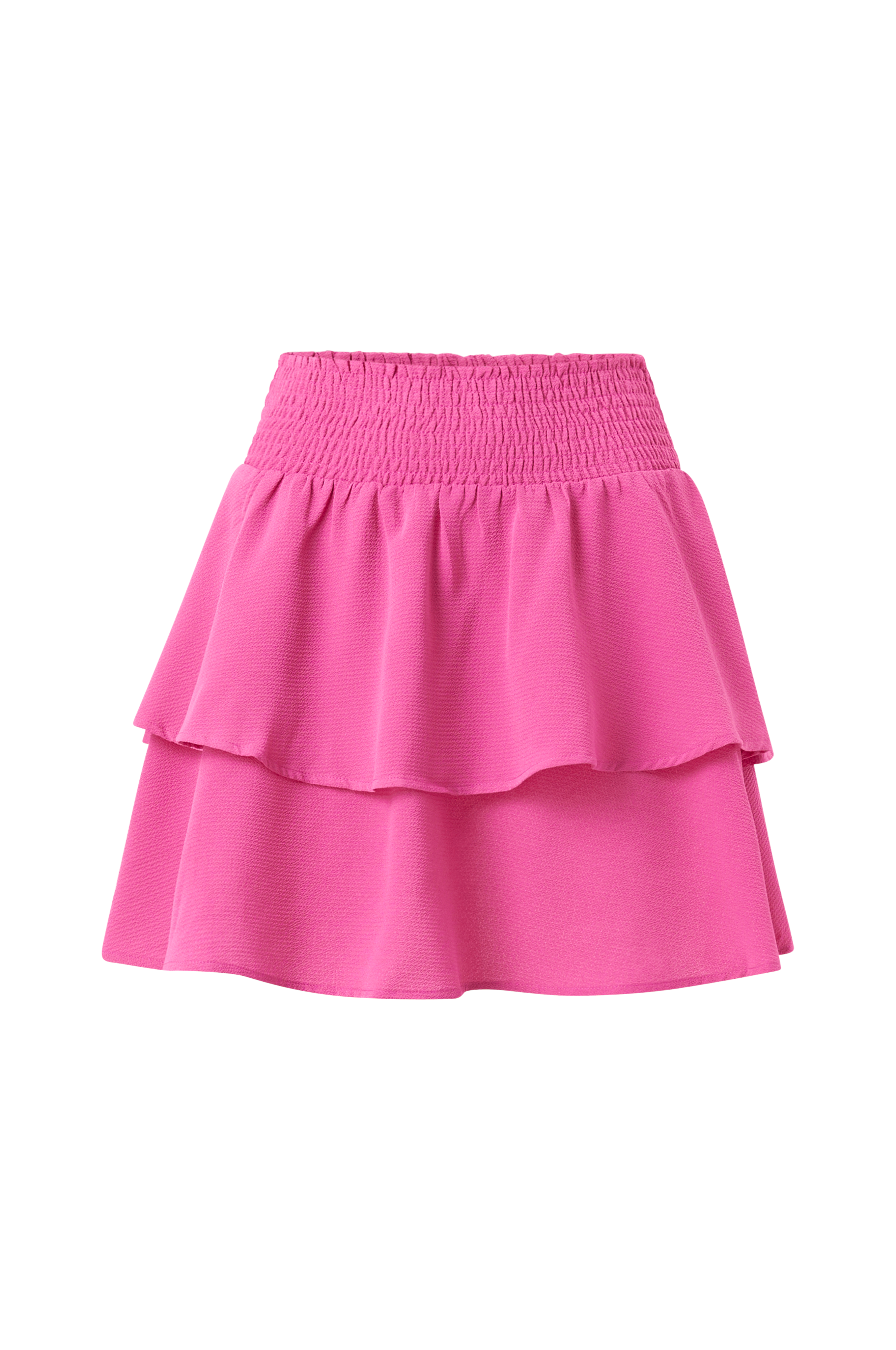 • Lyhyt hame röyhelöillä• Elastinen rypytys vyötäröllä• Krepattu laatu