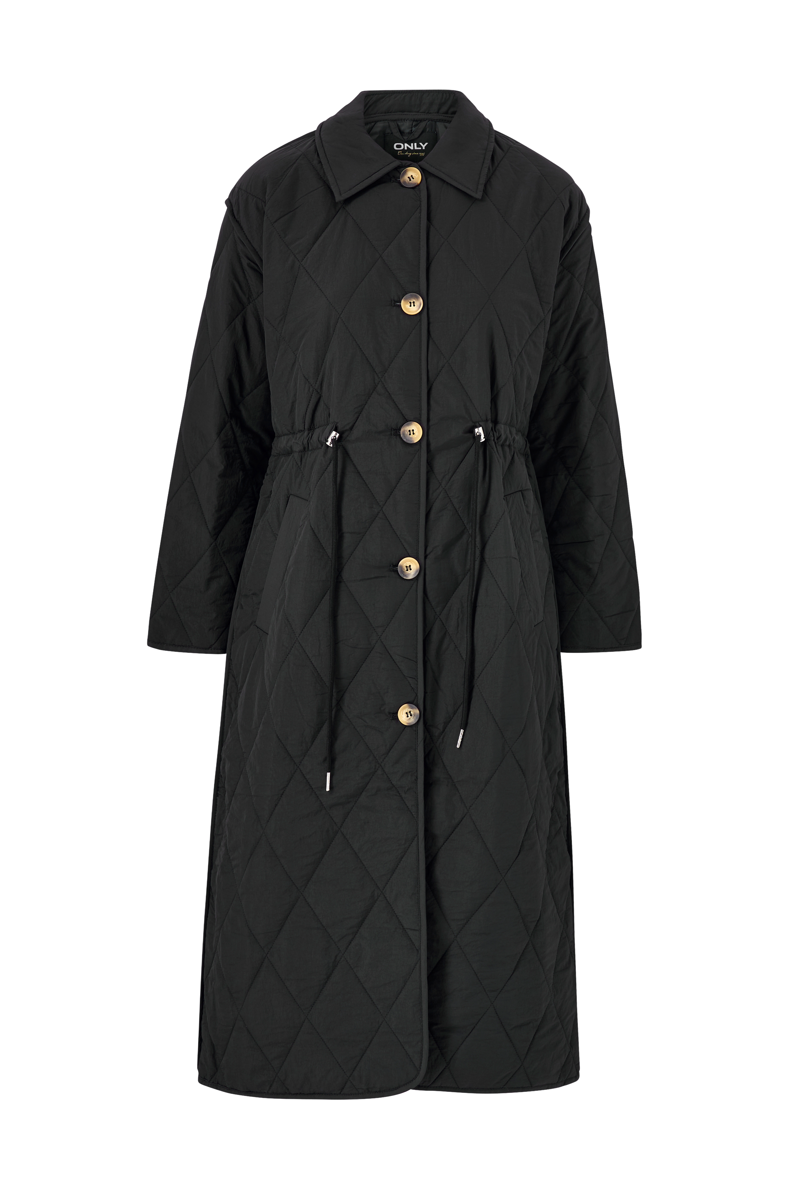 • Pitkä, tikattu takki ohuella toppauksella