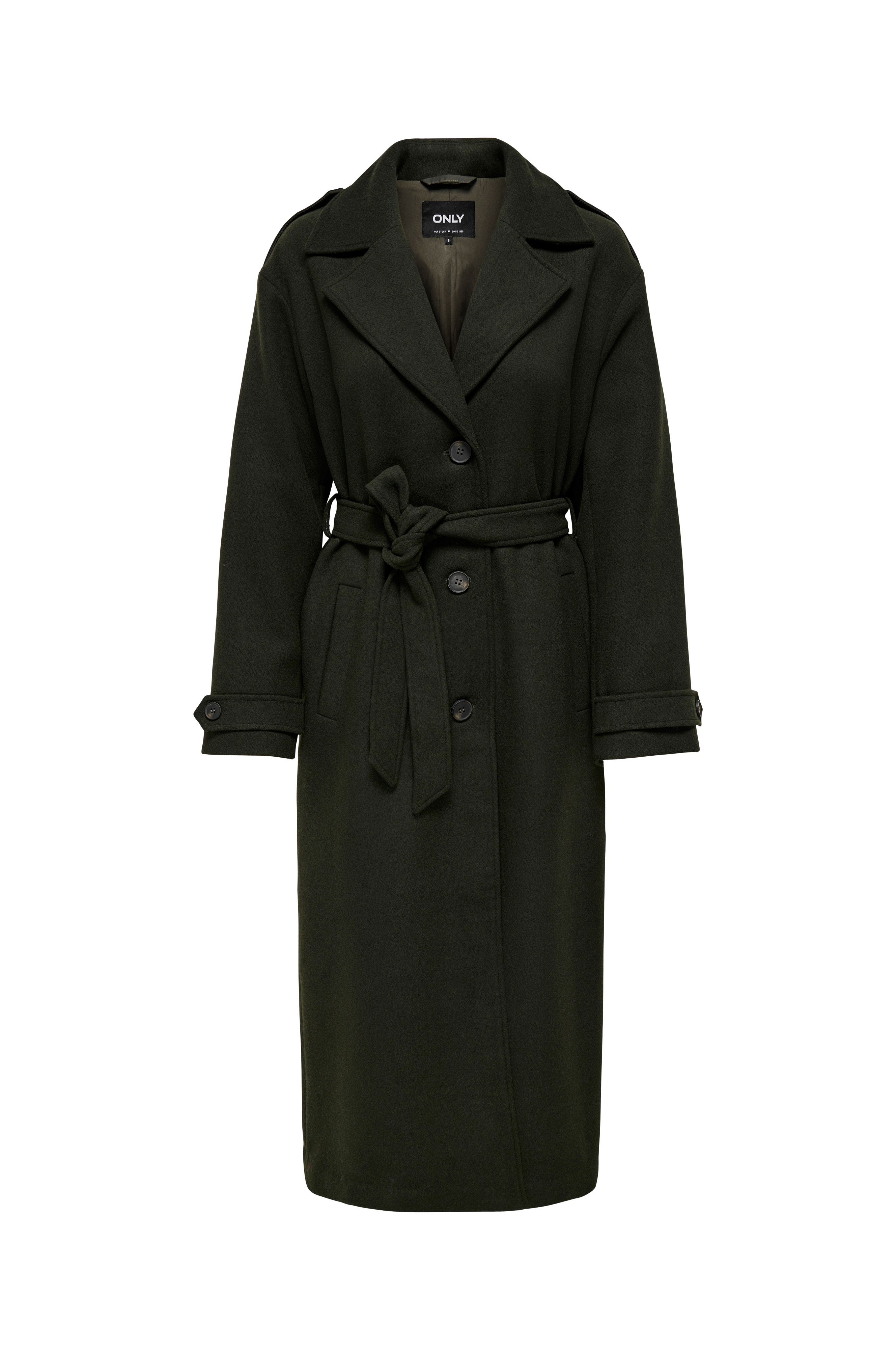 • Pitkä trenssitakki villasekoitteesta• Olkasuojukset• Nappikiinnitys• Irrotettava itsesolmittava vyö• Sivutaskut• Halkio alhaalla takana• Kudottu, sileä vuori• Pituus: 124 cm koossa S