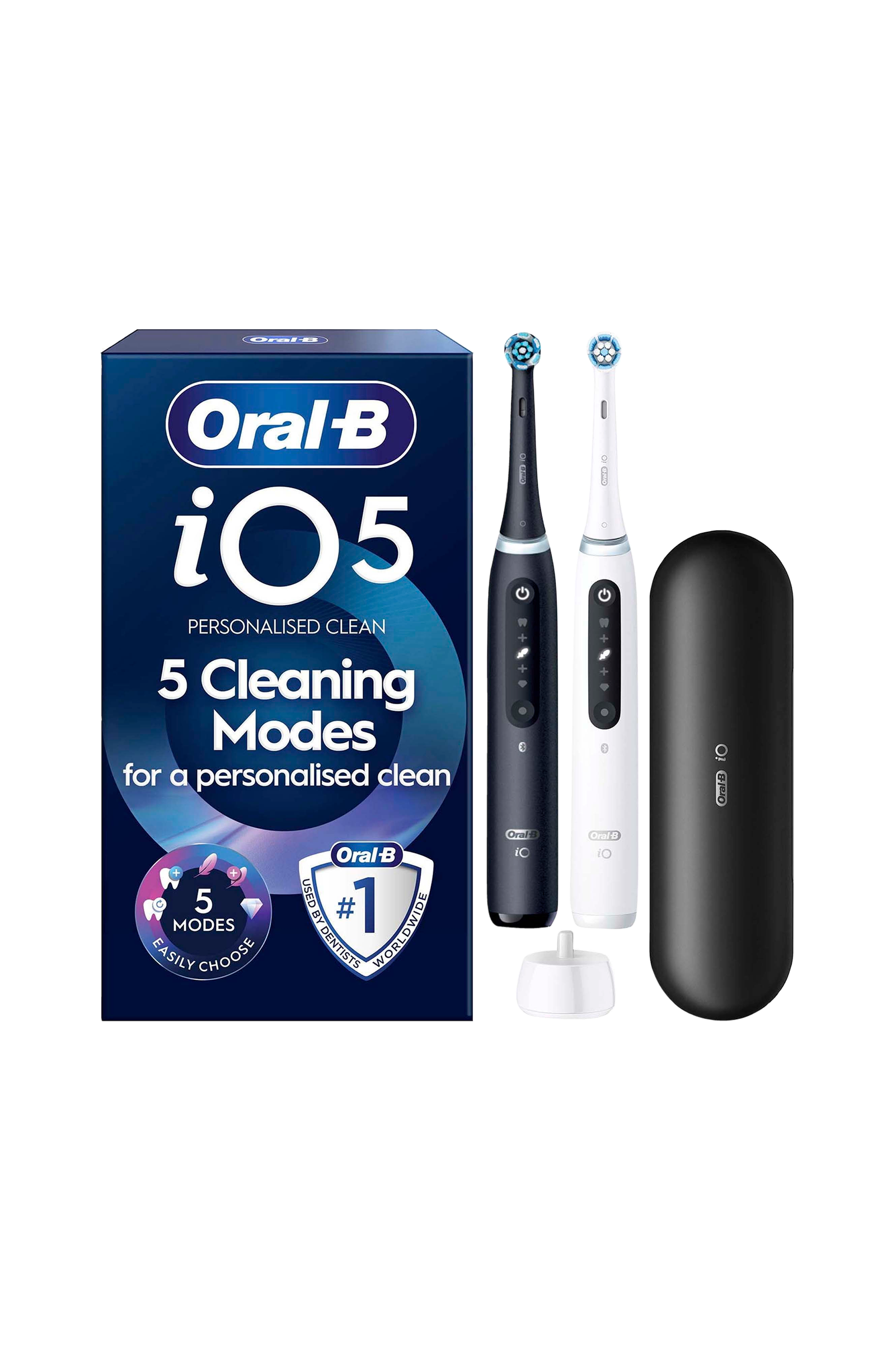 • Oral-B iO 5 -hammasharja käyttää kehittynyttä puhdistusteknologiaa, jossa on hellävaraiset mikrovärähtelyt ja hammaslääkärin inspiroima pyöreä harjanpää.