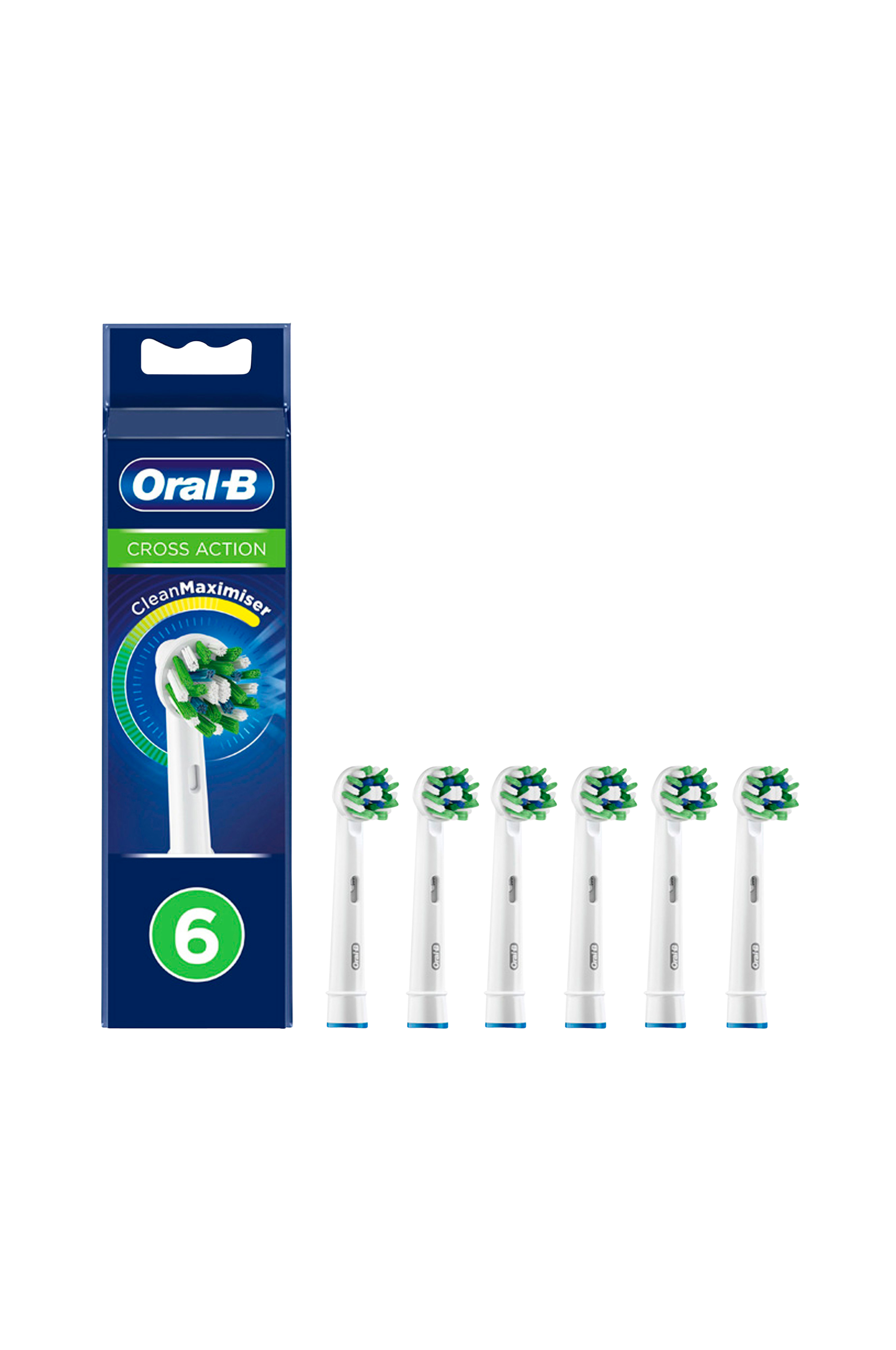 Oral-B:n paranneltujen CrossAction-harjaspäiden CleanMaximiser-teknologia saa harjakset vaihtamaan väriä vihreästä keltaiseen, millä varmistetaan harjaspään optimaalinen suorituskyky ja mahdollisimman hyvä puhdistus. Ainutlaatuiset harjakset ulottuvat syvälle hampaiden väleihin, poistavat plakkia ja jättävät koko suun puhtaammaksi kuin tavallinen käsikäyttöinen hammasharja.