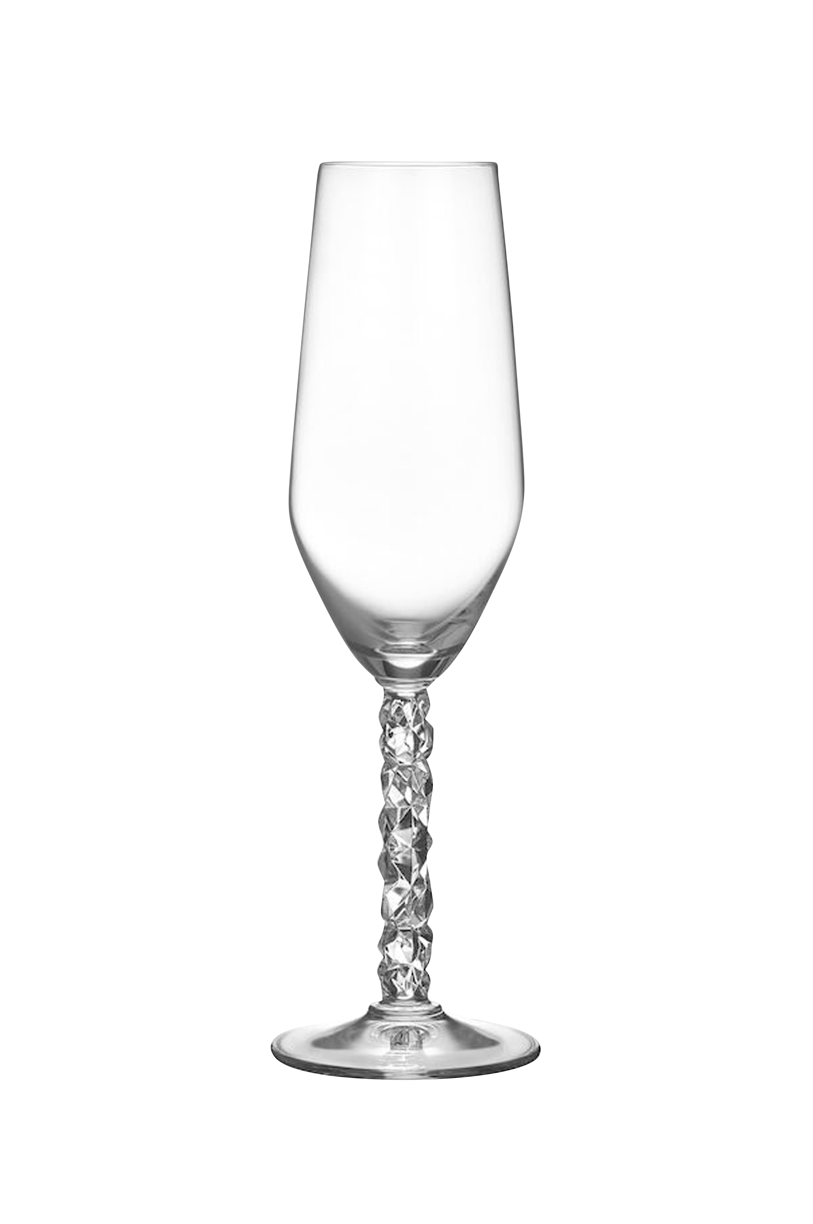 Carat-sarja perustuu nykyaikaiseen tulkintaan perinteisestä lasinhionnasta, mikä on tehnyt Orreforsista maailmankuulun. Epäsäännöllinen geometria luo kauniita valon heijastuksia kristallilasiin. Carat Champagne -lasi sopii kuohuville juomille. Lasin jalassa on sarjalle ominainen kuvio. Muotoilu: Lena Bergström.