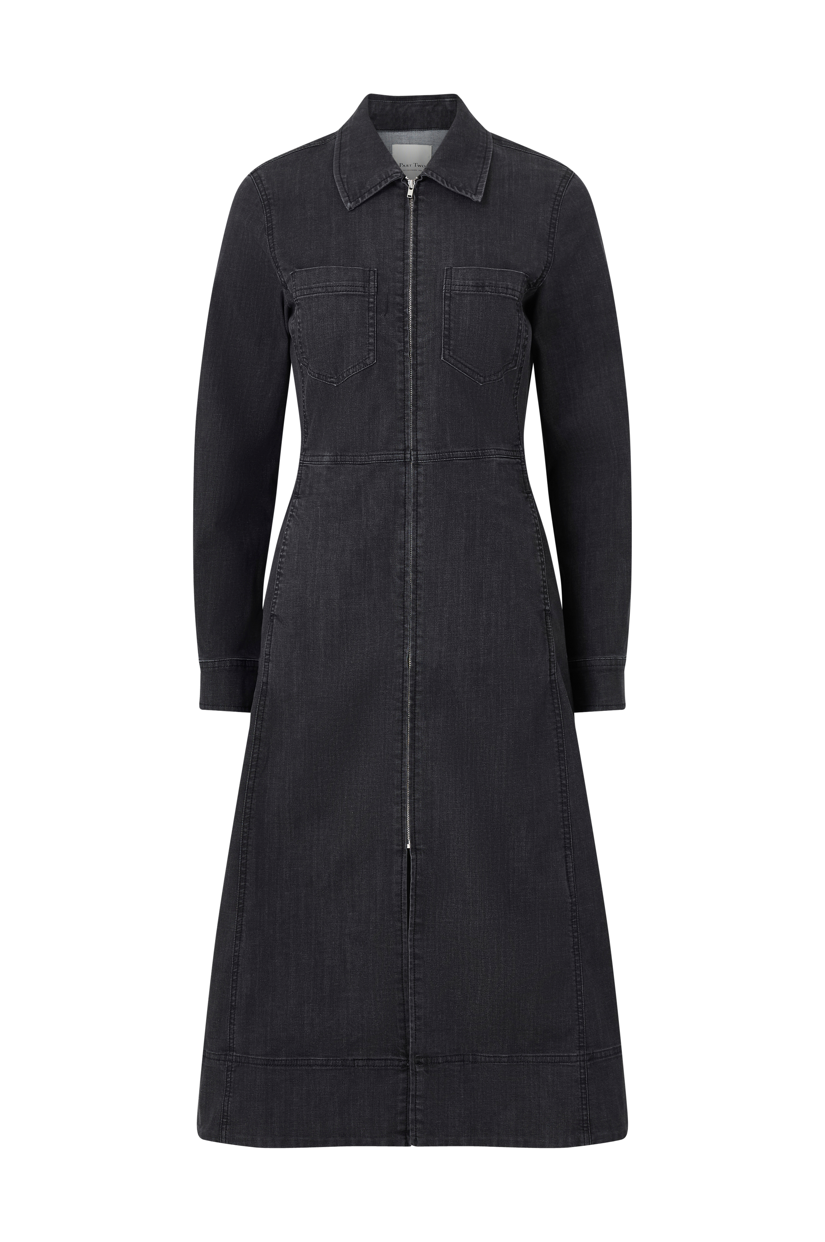 • Farkkumekko kauluksella• Vetoketju suoraan eteenpäin• Kaksi rintataskua• Pitkät hihat hihansuilla hihansuissa• Sivutaskut• Levenevä hame halkiolla alhaalla edessä• Pituus: 122 cm koossa 36