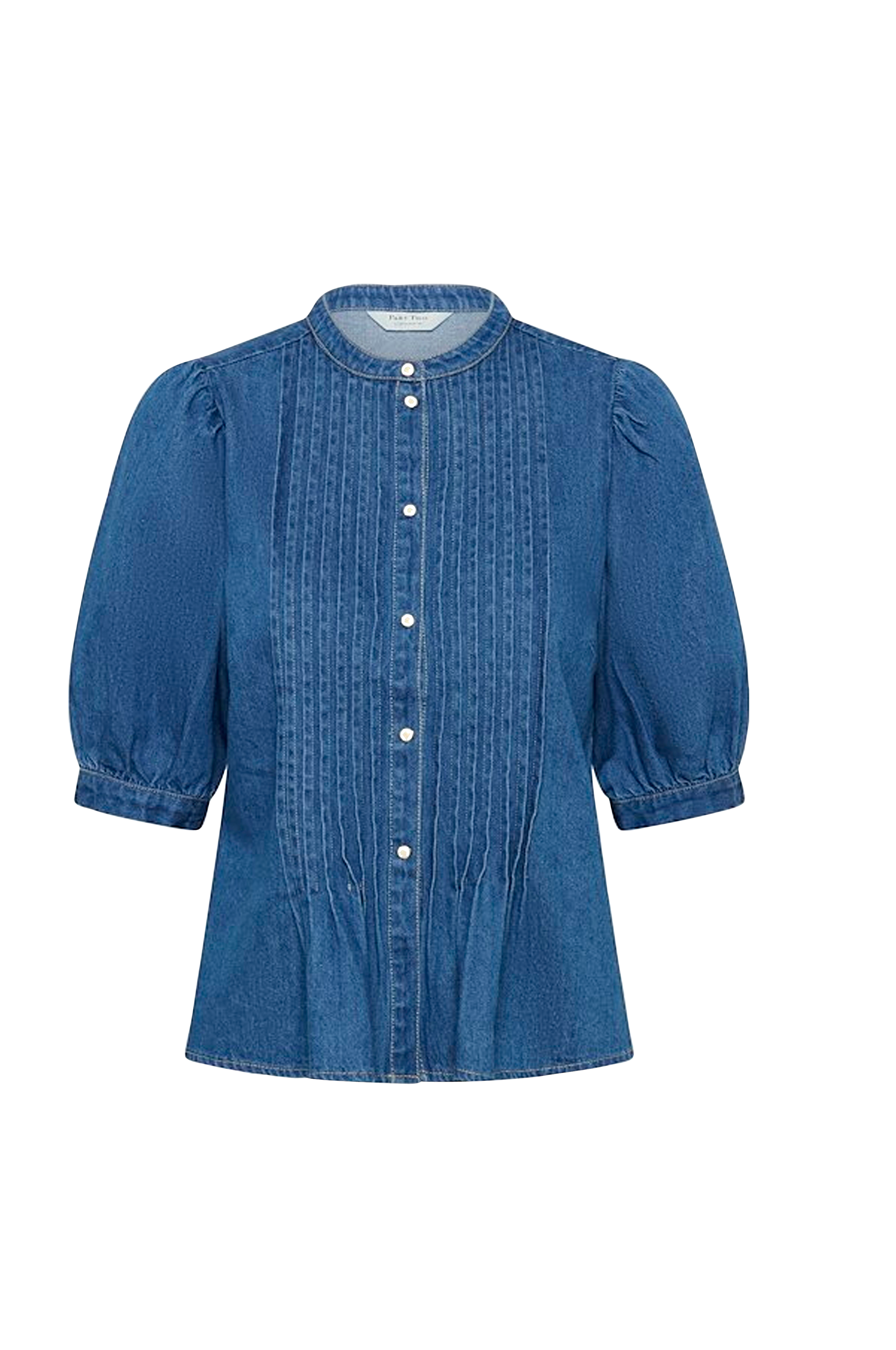 • Peplum-malli• Kapea pliseeraus edessä• Valkoiset nepparit• Lyhyet bubble-hihat