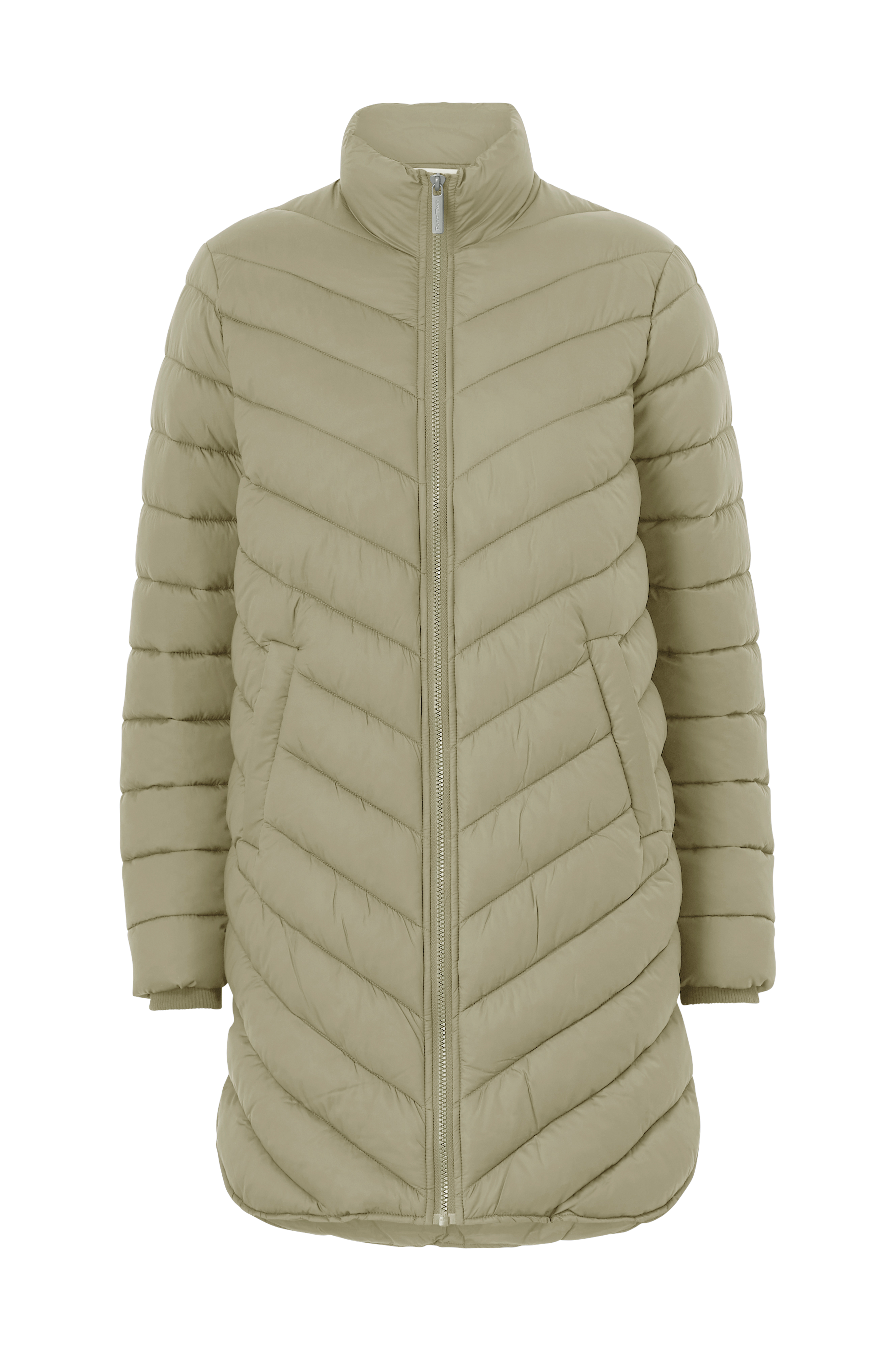 Tikattu, untuvamainen kevyttoppatakki. Edessä vetoketju, korkea kaulus ja kaksi upotettua taskua. Upotettu resori hihansuissa, pyöristetty helma. Pituus n. 90 cm koossa 36.