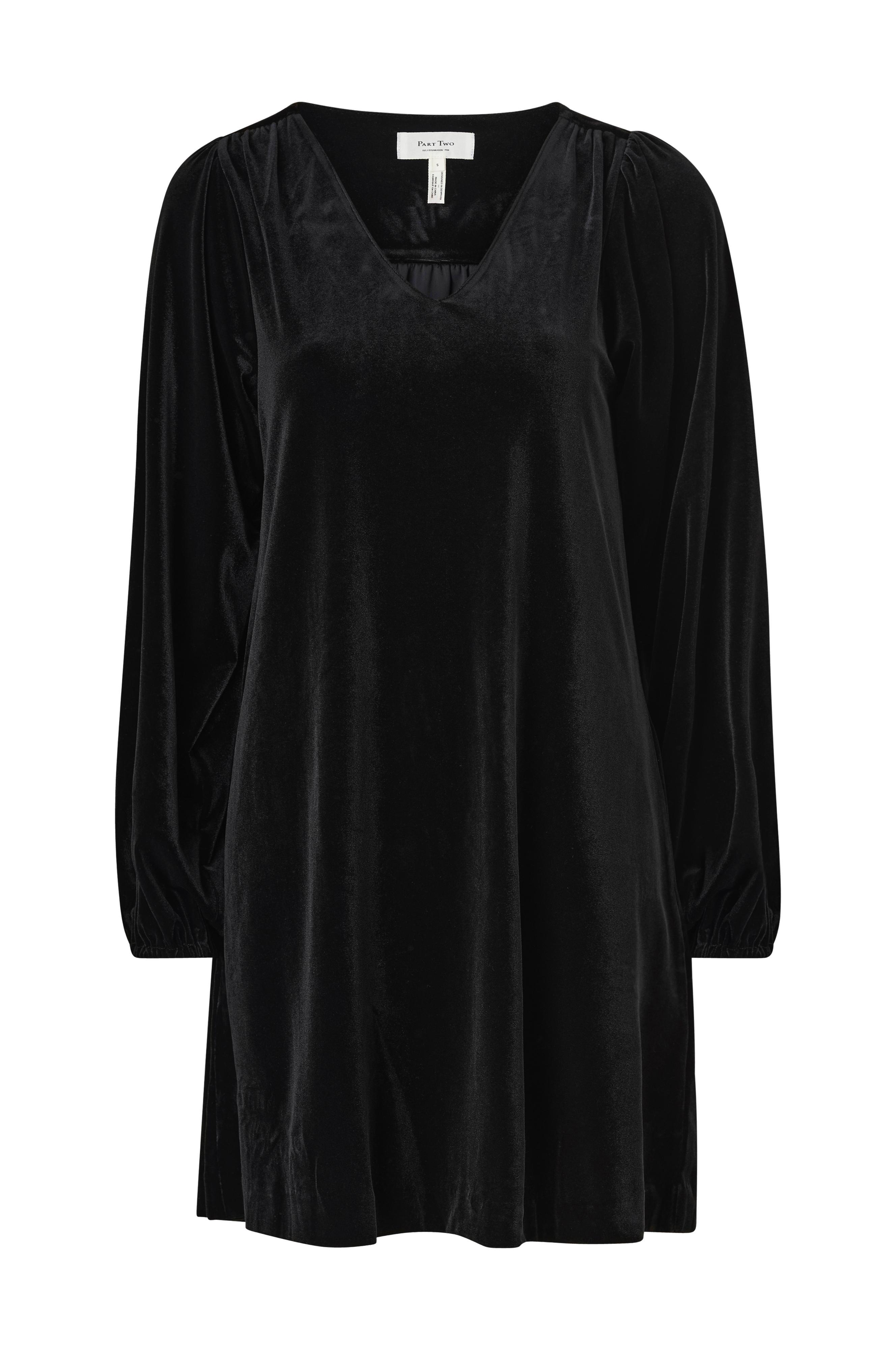• Mekko hohtavasta, joustavasta veluurista• V-muotoinen pääntie• Pitkät hihat kuminauhalla hihansuissa• Pituus: 92 cm koossa S