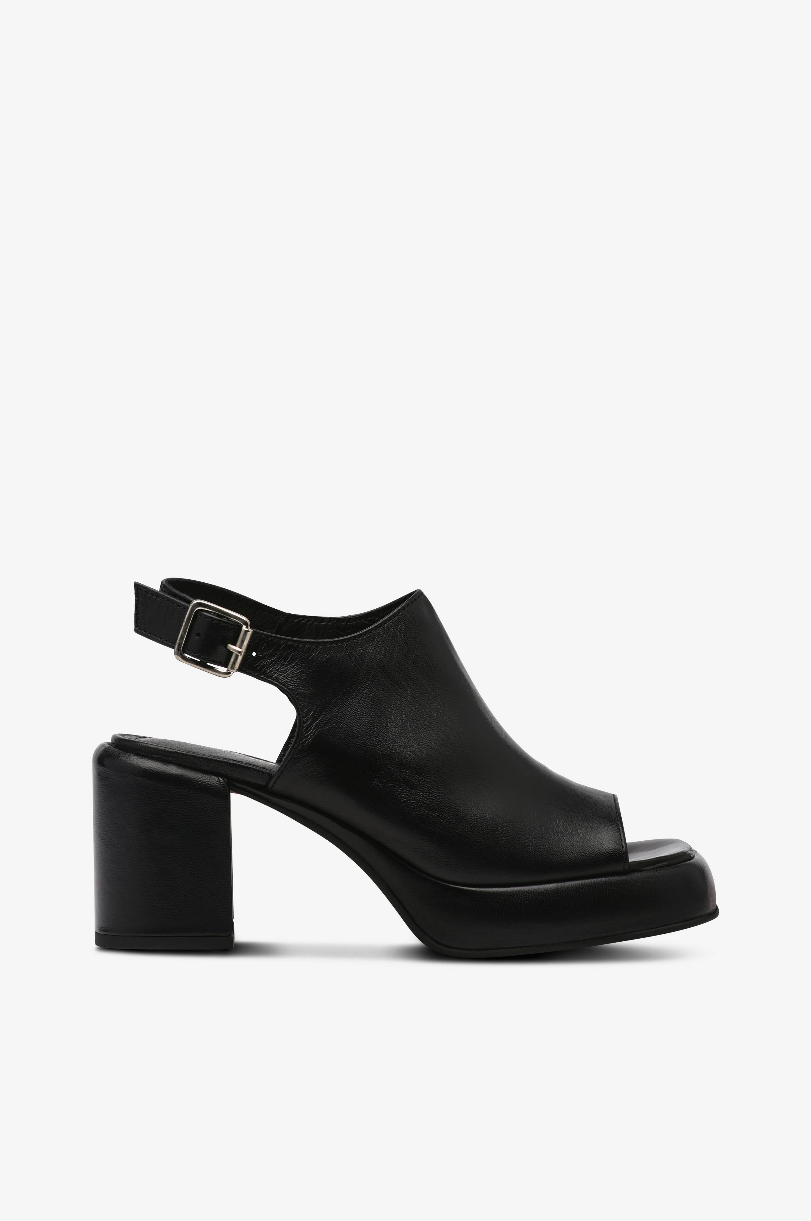 • Korkeat korolliset sandaalit nahkasta ja mokasta• Avoin kärki• Solki nilkassa• Korkea tolppakorko• Korokepohja• Koron korkeus: 8 cm