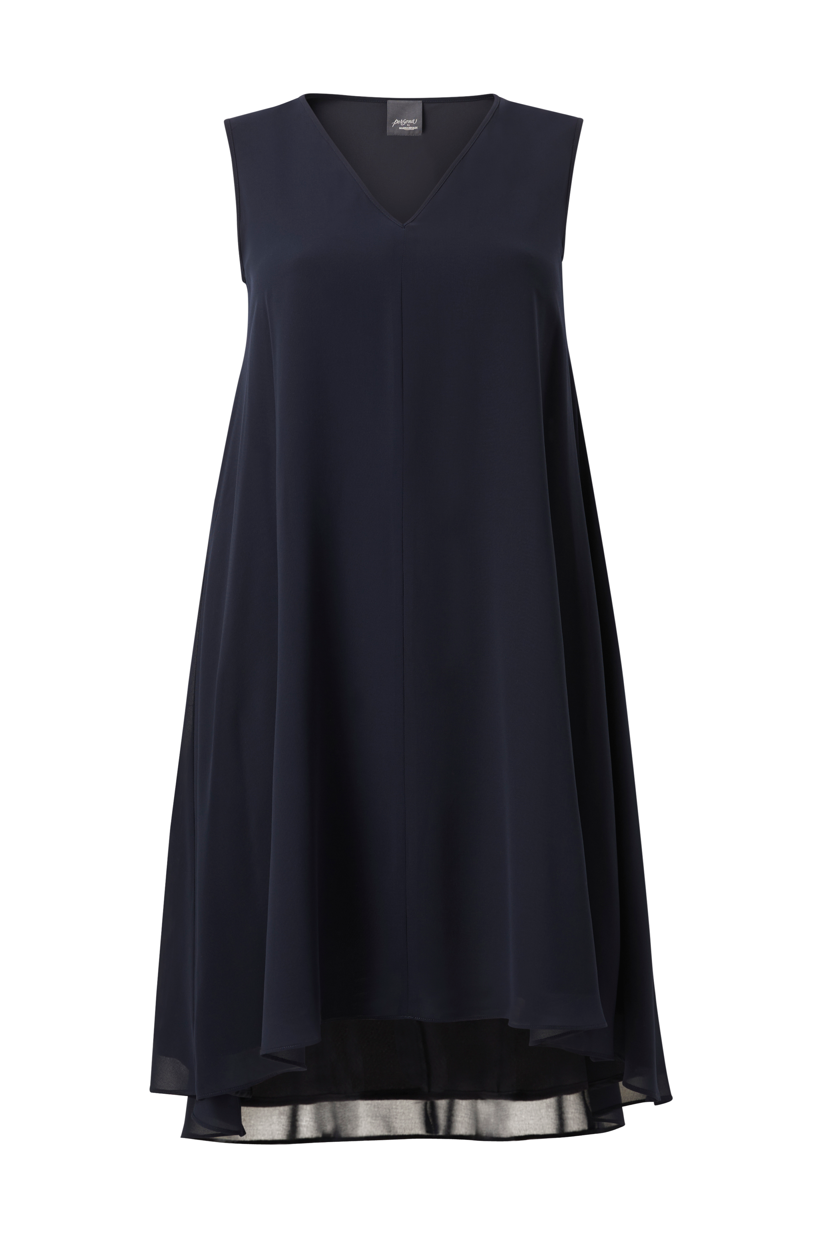 • Vuorattu, hihaton mekko kevyestä georgetteesta• A-linjainen leikkaus• V-muotoinen kaula• Epäsymmetrinen helma• Plus-koot• Mukana on kaksi löysää, lyhyttä hihaa, jotka voidaan ommella mekkoon.• Pituus: 116 cm koossa 44