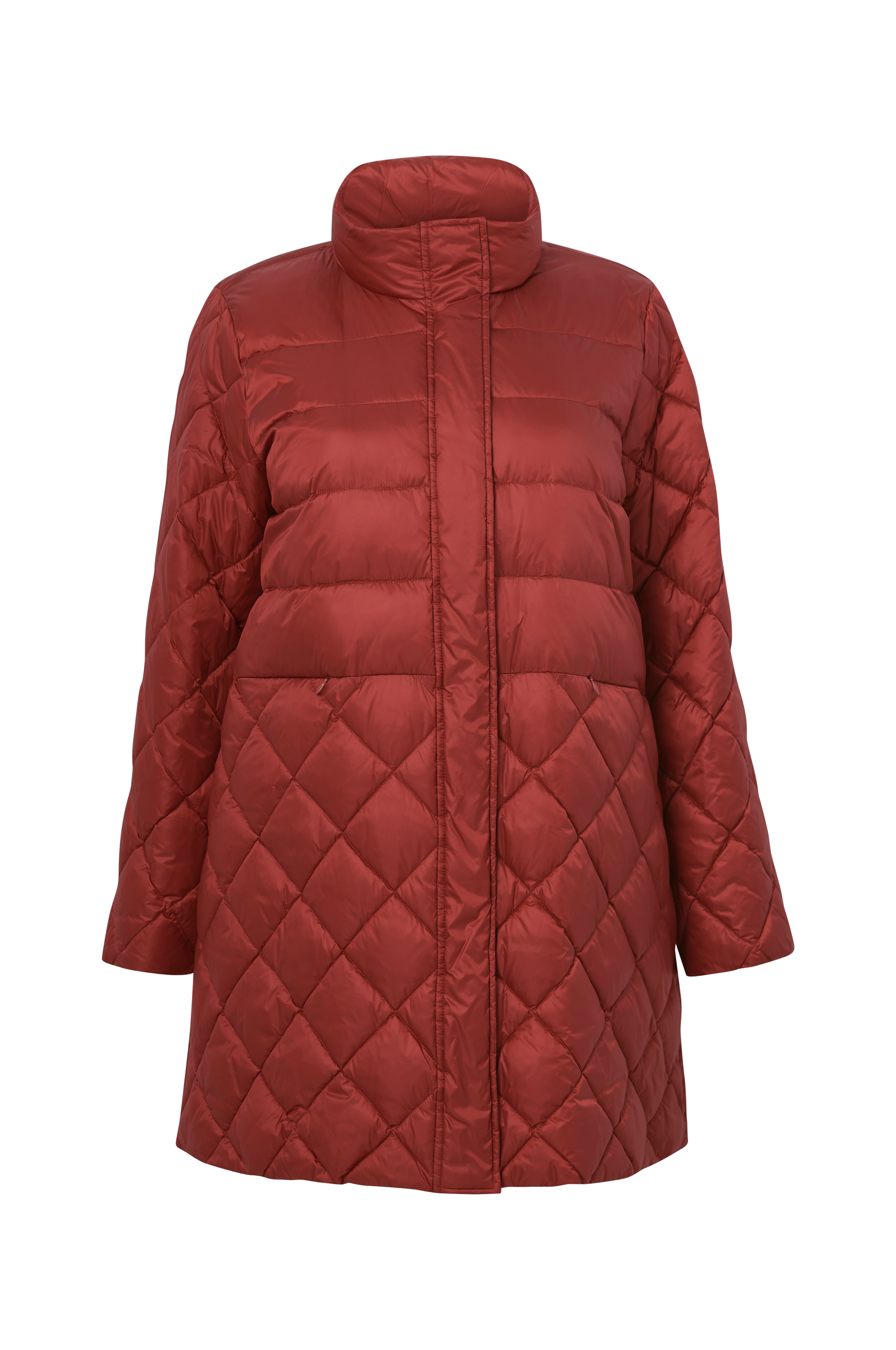 Tikattu toppatakki, jossa korkea kaulus. Kaksisuuntainen piilovetoketju, tuulisuojalista ja painonapit. Kaksi taskua, joissa piilovetoketju. Pituus n. 94 cm koossa 48.