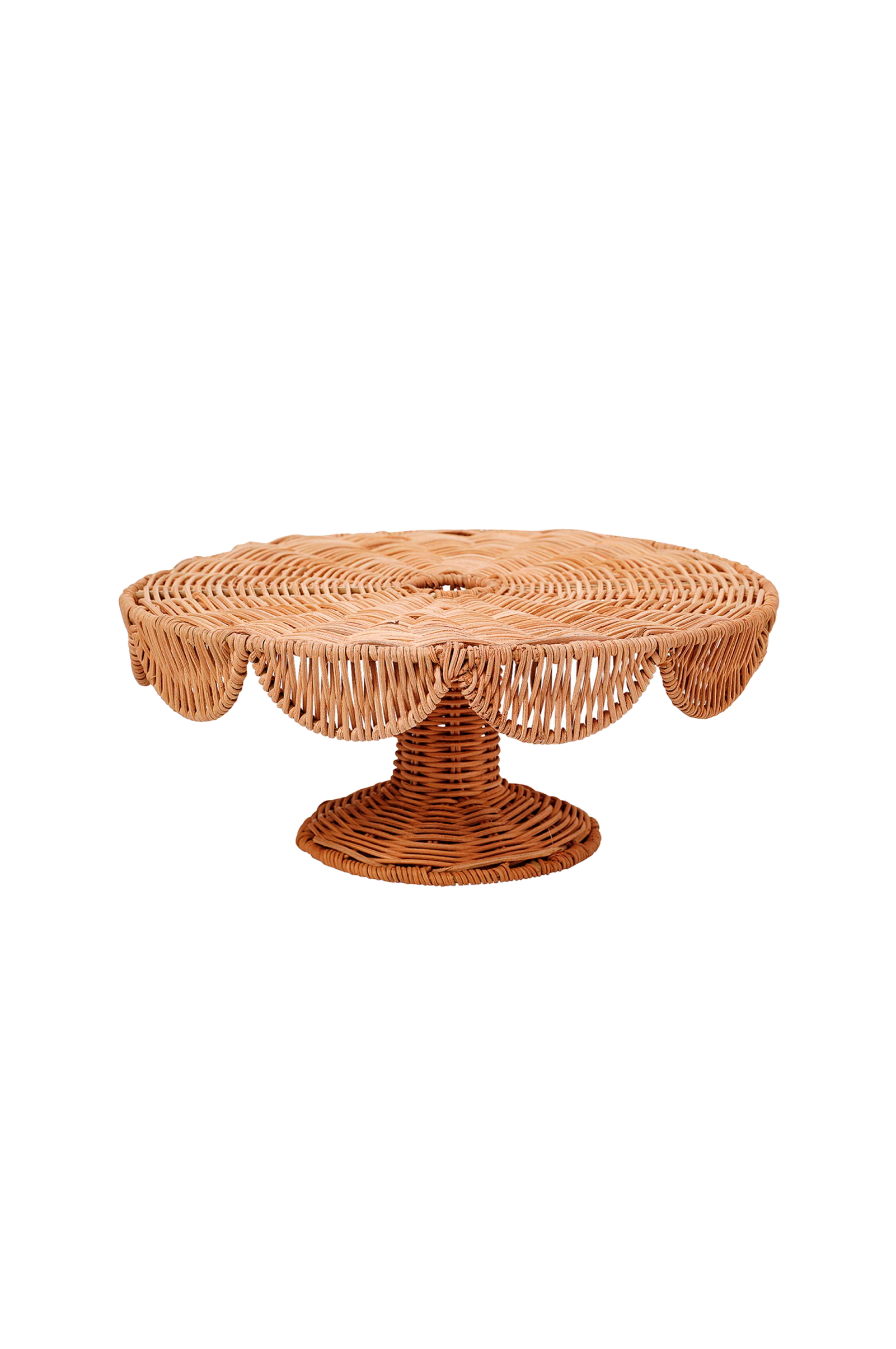 Lisää maalaismaista tyylikkyyttä pöytäsi esillepanoon luonnollisella rottingista valmistetulla Scallop Kakkujen tarjoilulautasella. Perinteisellä käsityötaidolla käsinkudottu, ajaton kakkuteline tuo lämpöä ja rakennetta jokaiseen tilaisuuteen. Kauniisti uurrettu reuna tuo pehmeän, koristeellisen kosketuksen, joten se sopii täydellisesti kakkujen, leivonnaisten tai kauden herkkujen esittämiseen.