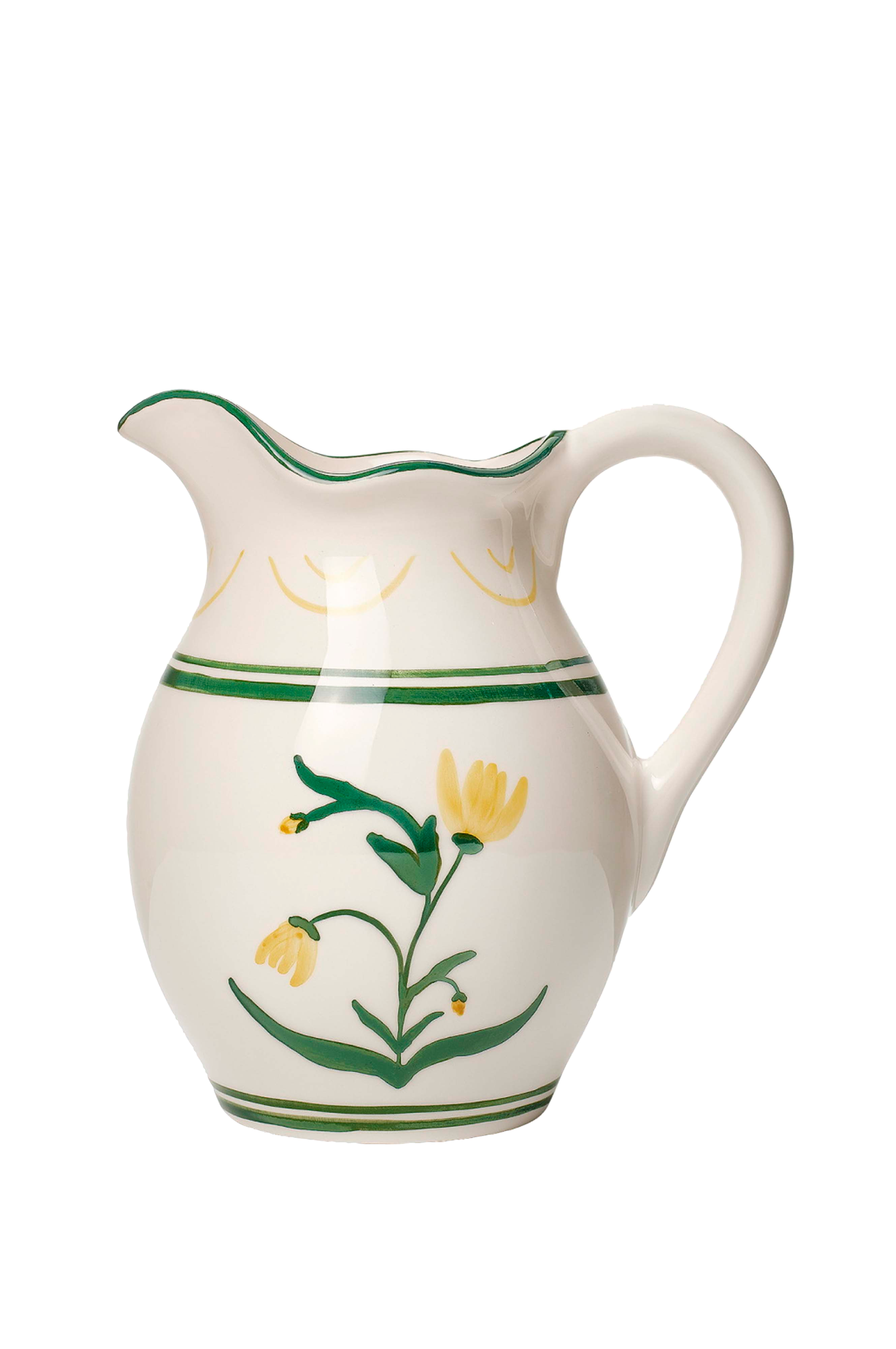 Tämä kannu on osa Cottage Flower -mallistoa. Huolellisesti käsityönä keramiikasta perinteisellä portugalilaisella käsityötaidolla valmistettu Cottage Flower Kannu on koristeltu viehättävällä käsinmaalatulla kukka-aiheella pehmeän keltaisella ja vihreällä. Sopii täydellisesti yhdistettäväksi muiden Cottage Flower -sarjan kappaleiden kanssa harmonisen ilmeen luomiseksi, mutta on yhtä kaunis myös itsenäisenä aksenttina.